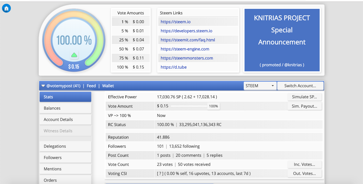 When @votemypost reaches %100 voting power, it will vote your posts using rating system according to total offers.
