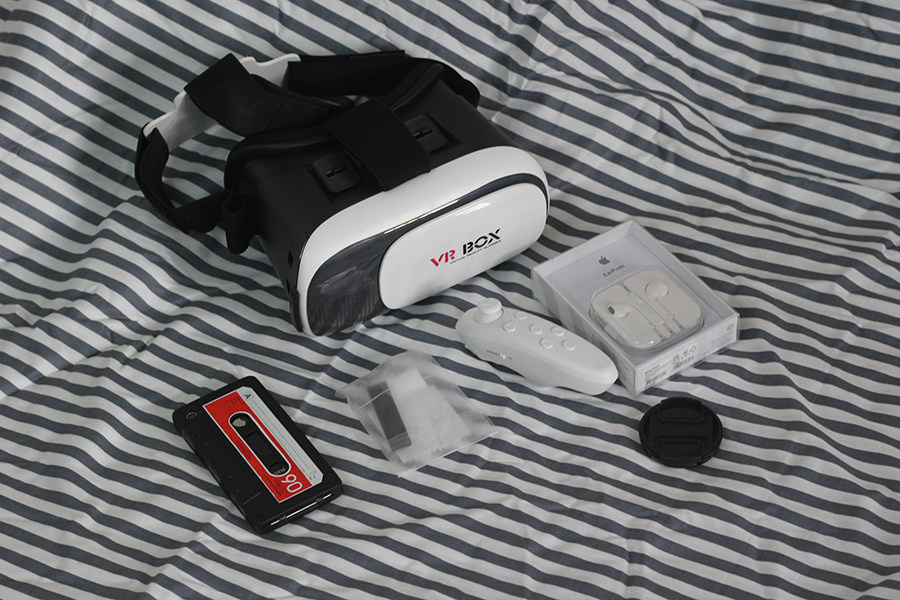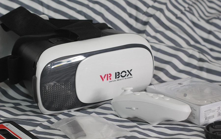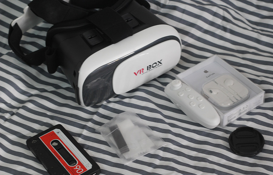 寶貝顏值很高,整體設計個人非常喜歡,之前在網絡上看過一些測評,VR BOX現時是沉浸試做的非常好的一款。配件方面:VR BOX虛擬與現實眼鏡、耳機、手柄、腳墊、布。