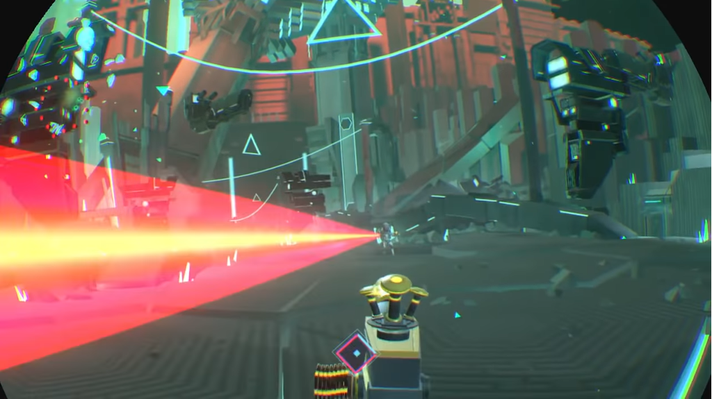In diese Sparte der aufregenden und technisch toll gemachten Spiele zähle ich auch Superhot VR und Blasters of the Universe (s. Bild oben). Beide machen vom Raumtracking Gebrauch (ihr könnt Euch in 1-2 m links/rechts bewegen um physisch Schüssen auszuweichen, Euch zu ducken). Dieses Gefühl der Körperlichkeit (Schüssen ausweichen, Schild hochhalten, mit Waffe zielen und schiessen) lässt Euch direkt in der Welt versinken.. schwupps ist eine Stunde vergangen, ohne das man es gemerkt hat! Gerade bei Blasters of the Universe ist das Raumgefühl famos, man fühlt sich wie in einer riesigen Kampfzone, die surrealen Vektorgrafiken und Farben unterstützen ein angenehmes Arcade-Gefühl.