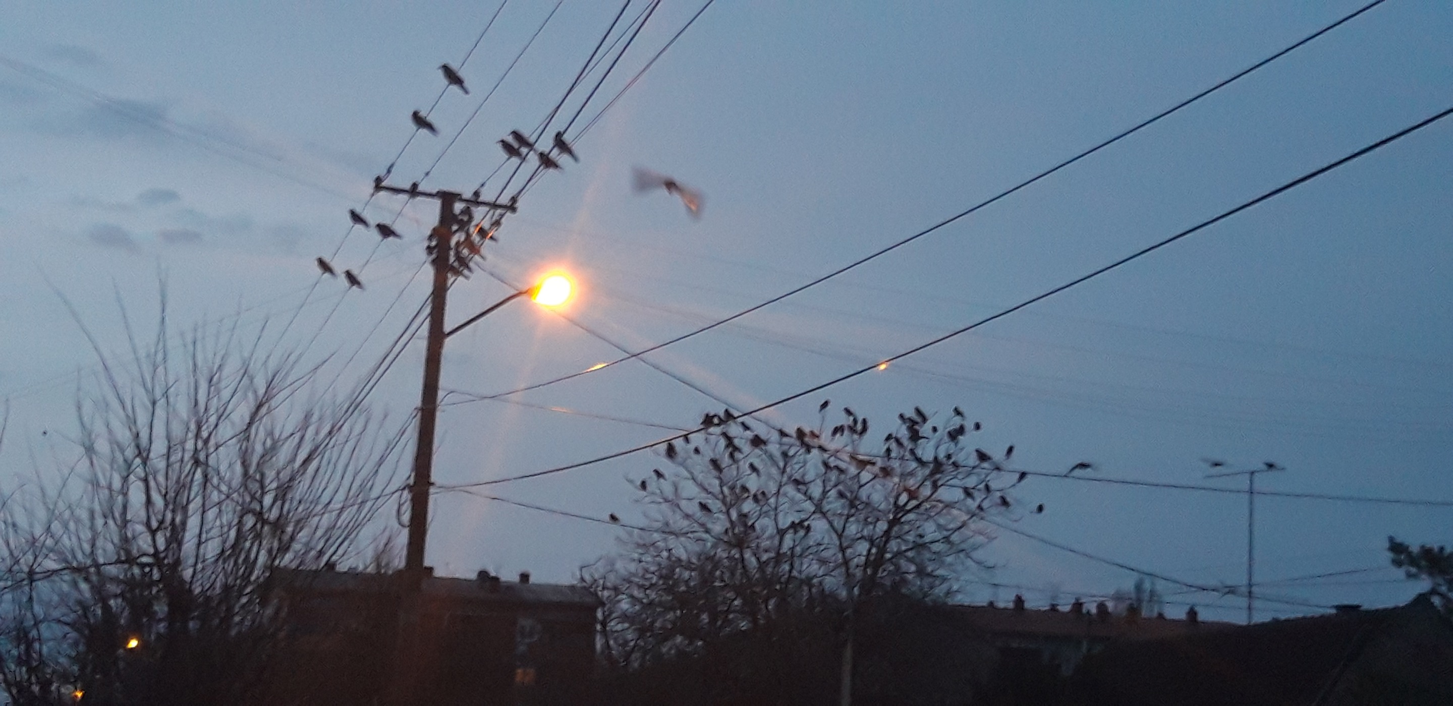 Ovo sam uslikao pre neko jutro kad sam krenuo na posao jato vrana u mojoj ulici.