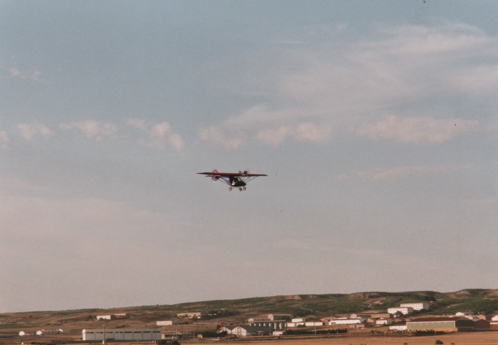 Gregorio en su Coyote con patín de cola, aterrizando por la "1-0". Viene del cercano Campo de Vuelo de Berbinzana.