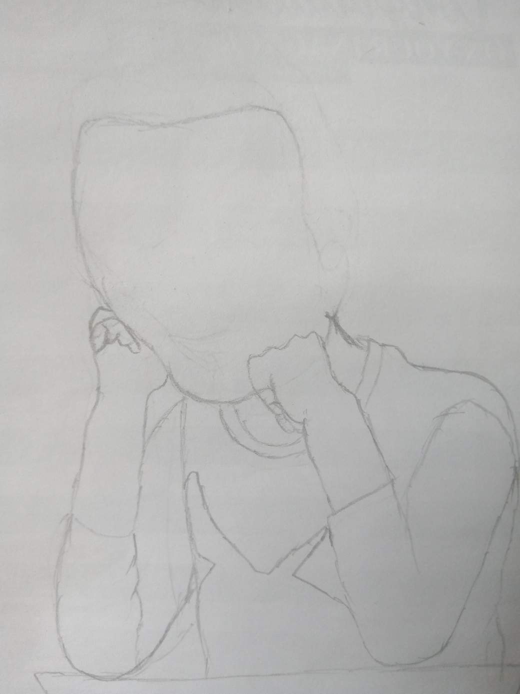 Today I draw a man thinking with his two hands on his jaw
