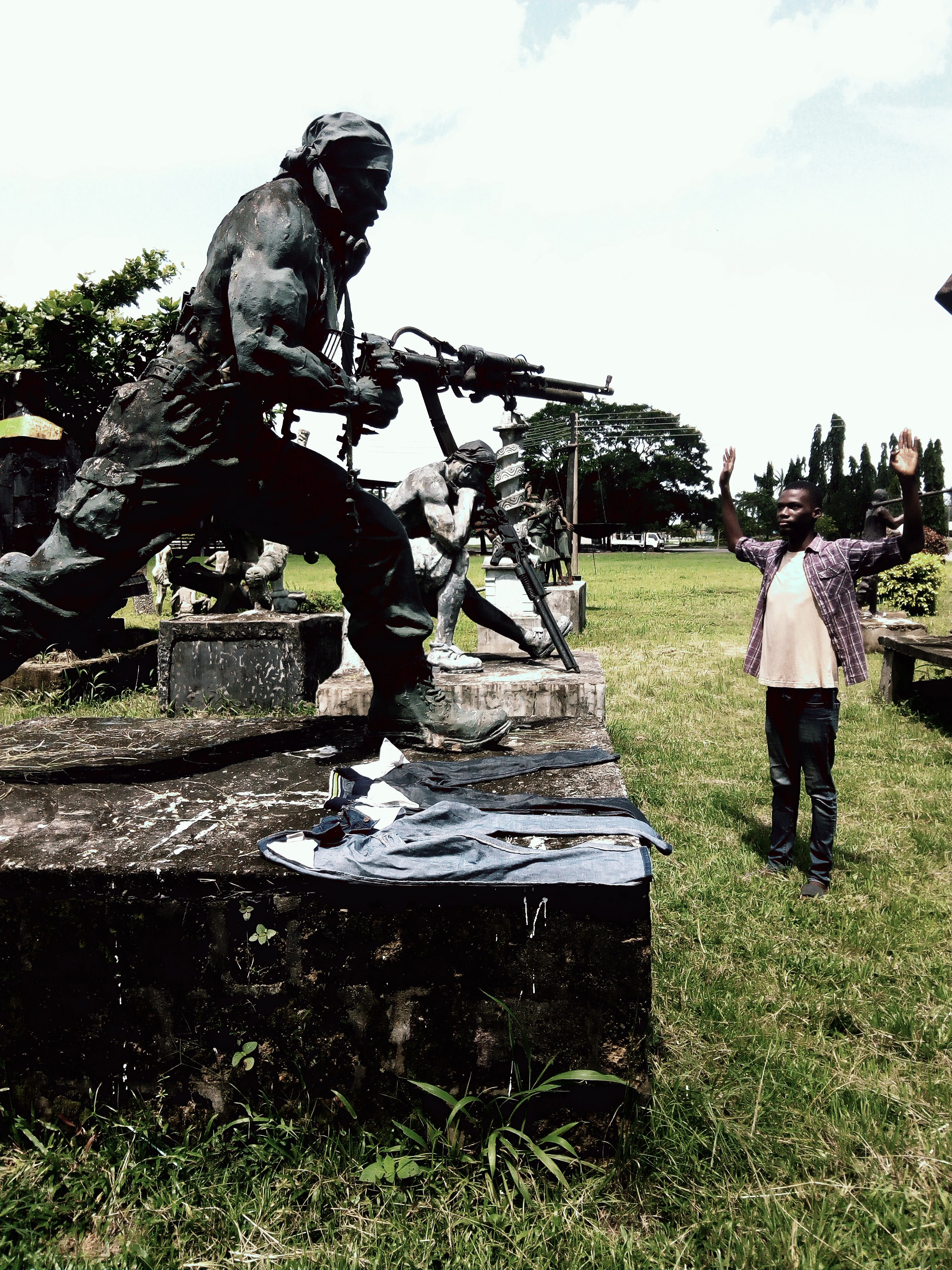 Furthermore, it was quite difficult for me to just leave the vicinity without checking out other artifacts, then I stumbled across other art work that caught my attention. It was a solider with a loaded gun and ready for battle, which reminds me of the civil war that happened in Nigeria as at 6th July 1967 to 15th January 1970