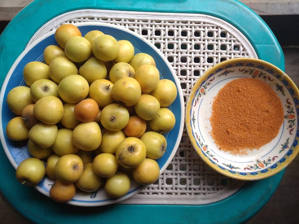 গাছের দেশী বরই সাথে মরিচের গুড়া আর লবন...
