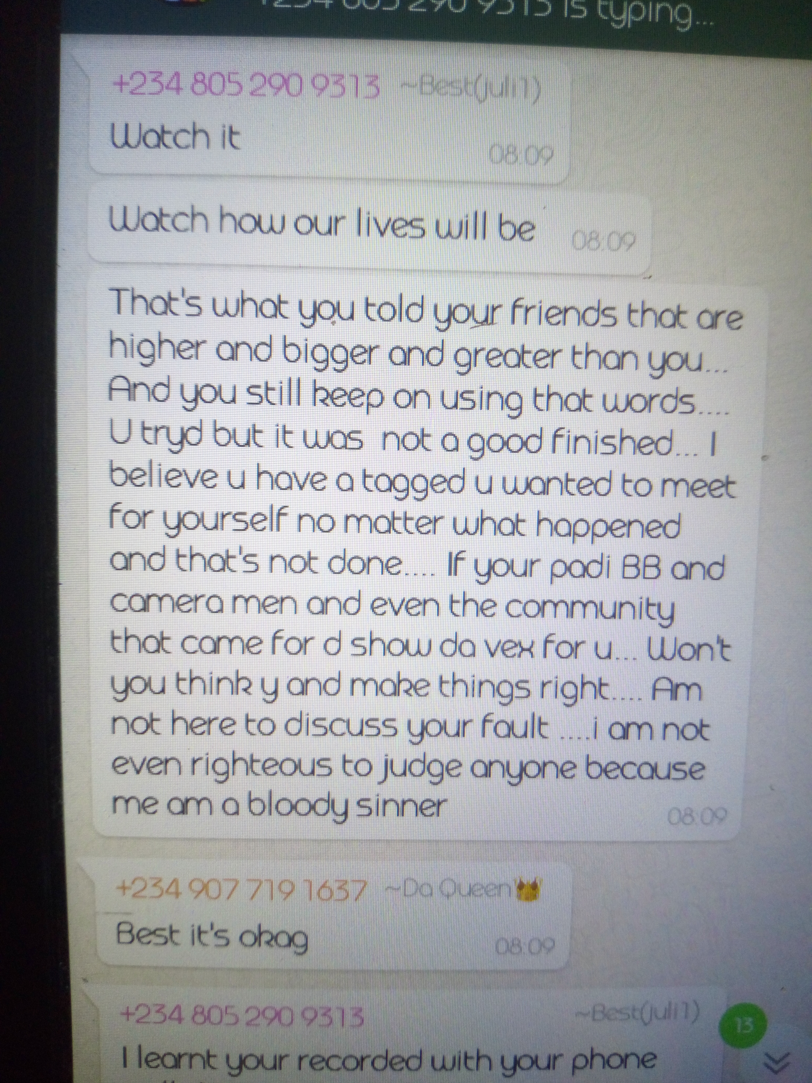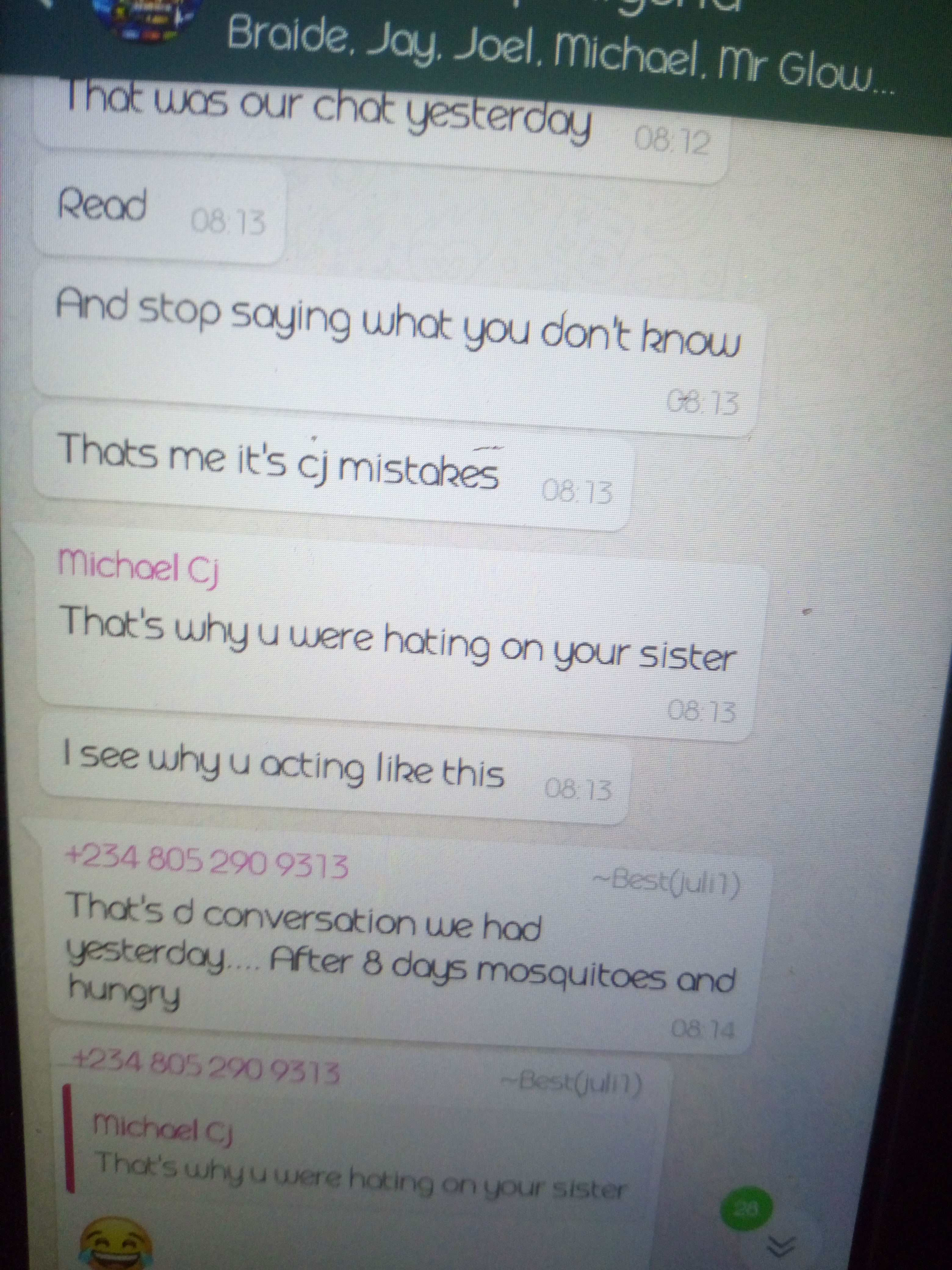 As am speaking with you now his on his way to have a meeting with some people to know how he will make me look like a liar,hold on and watch his new post. Was i the one who typed all the conversations on the group chat?