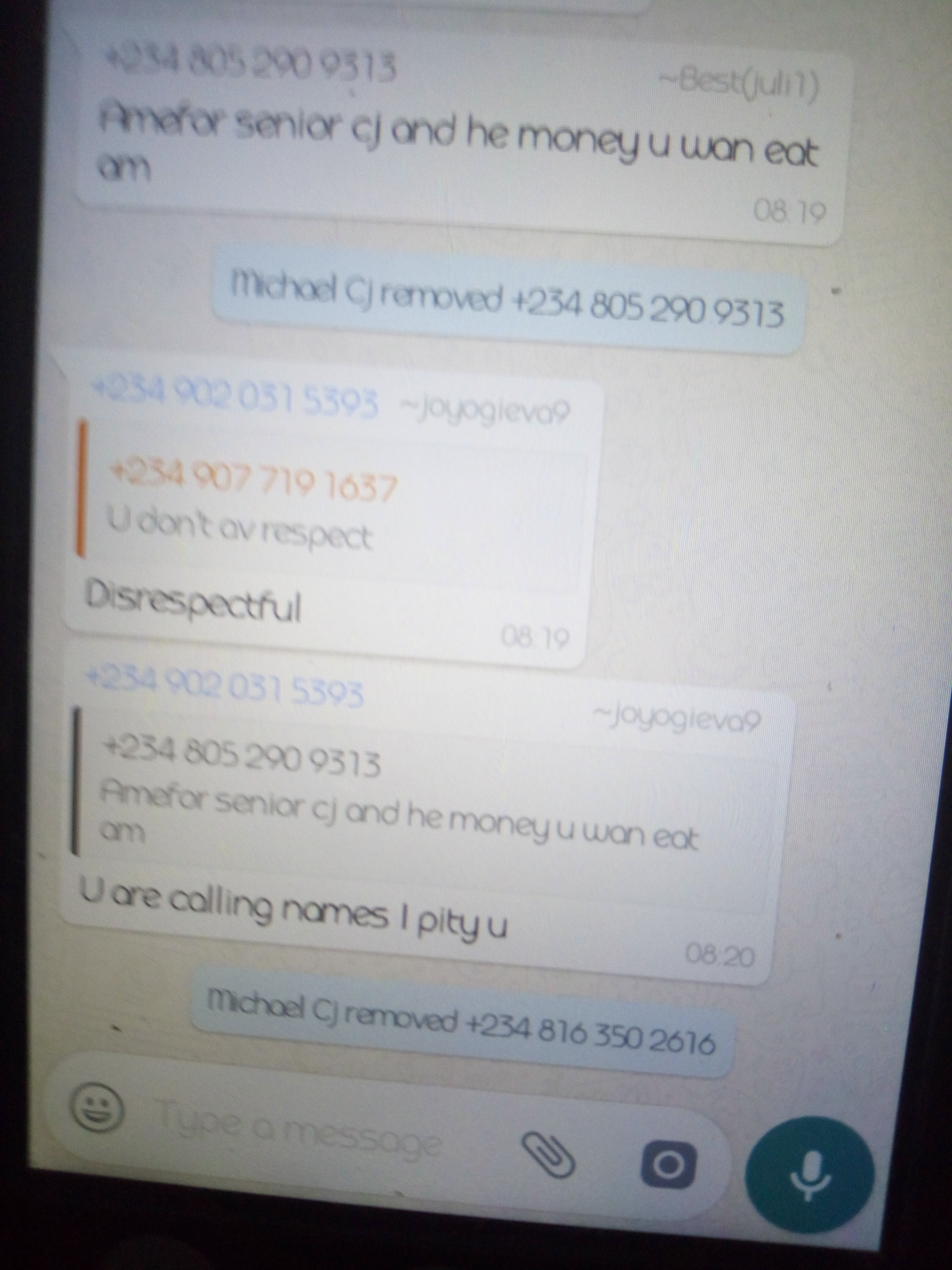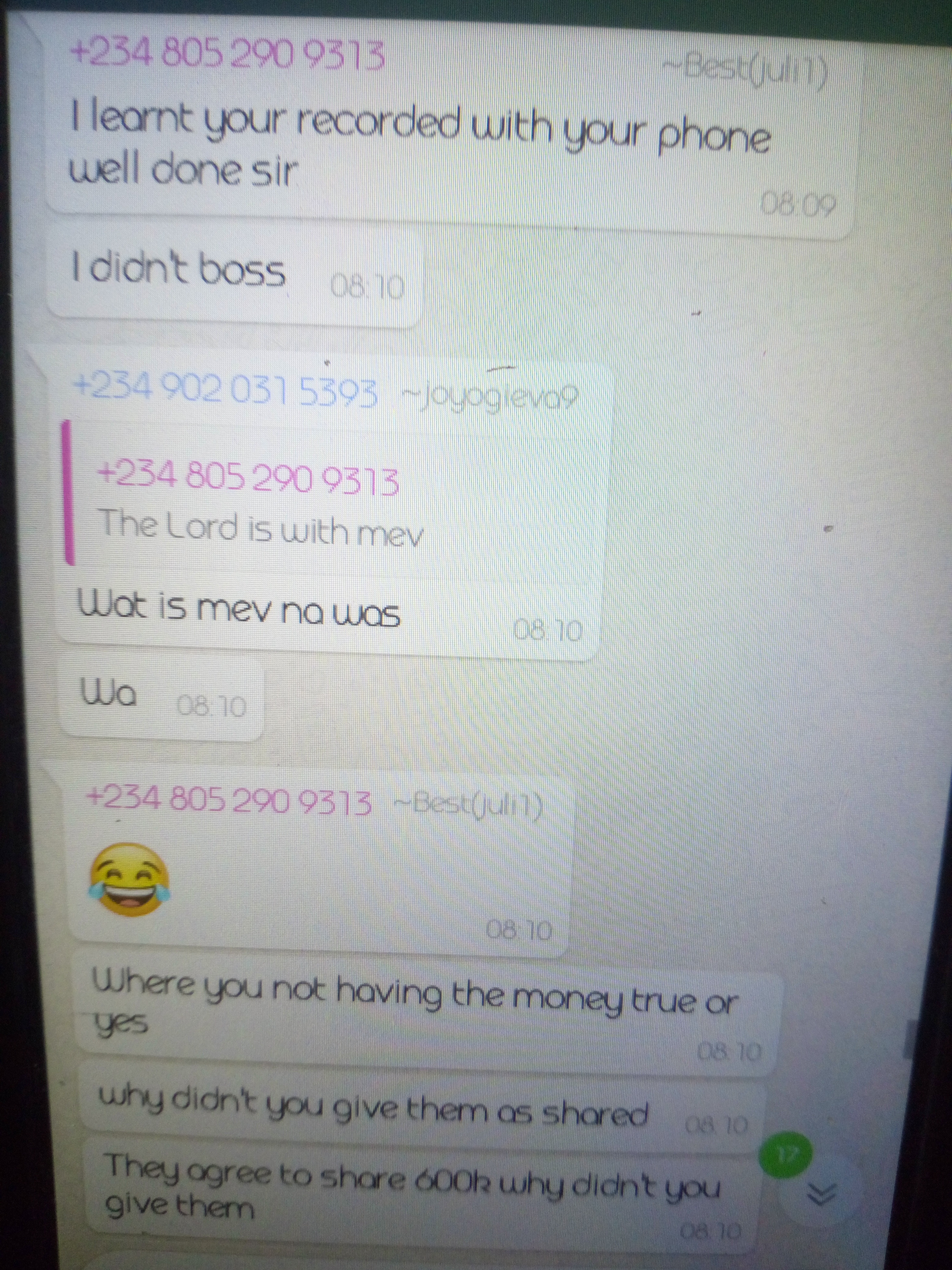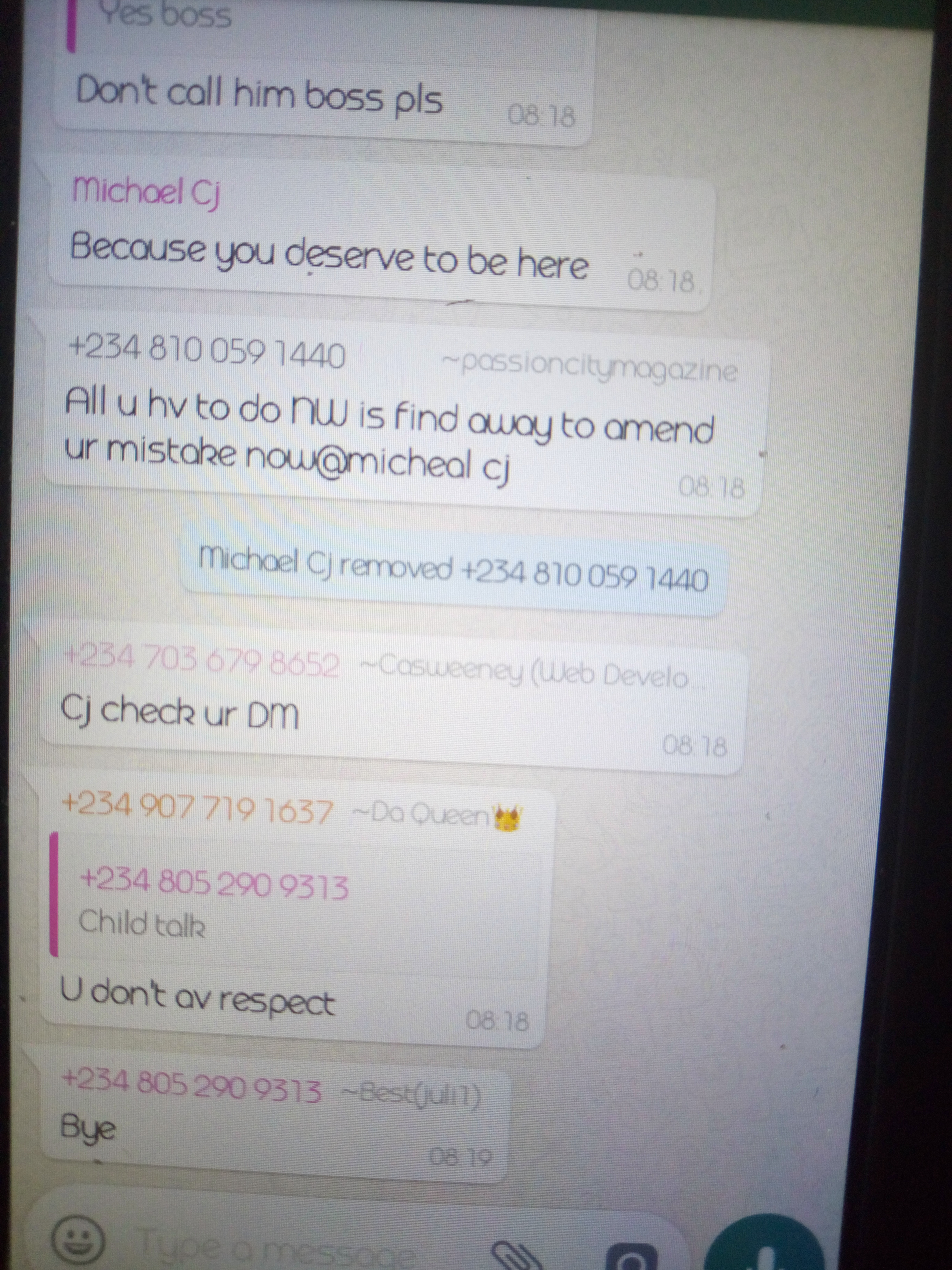 Now read this, this is from thee group chat,from one only person who knows his right and is ready to speak up,the rest cant because they were promised money! And then he removed him cos he spoke up.
