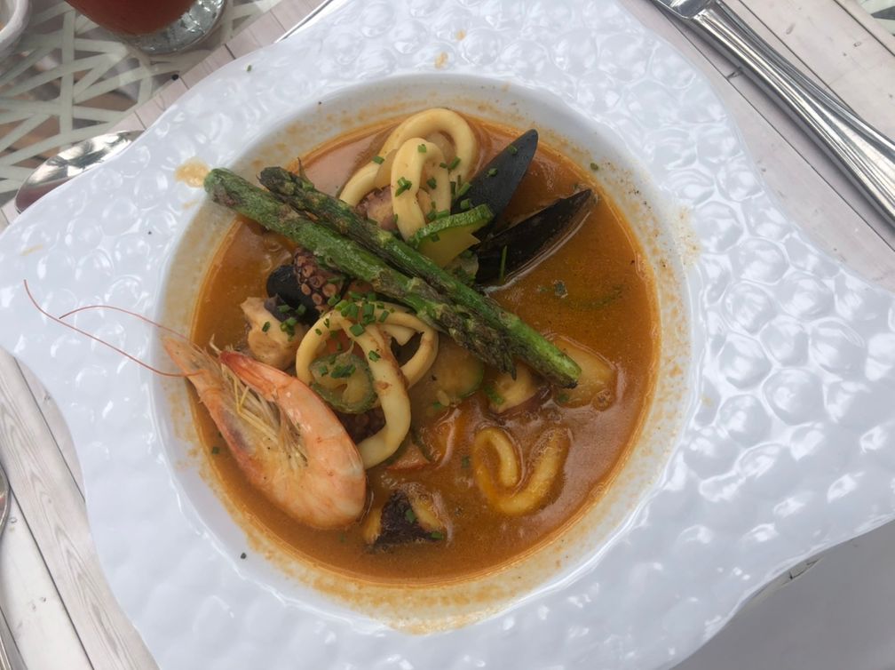 Restaurant is located by the pool with great views of the ocean. Service is fast and friendly.