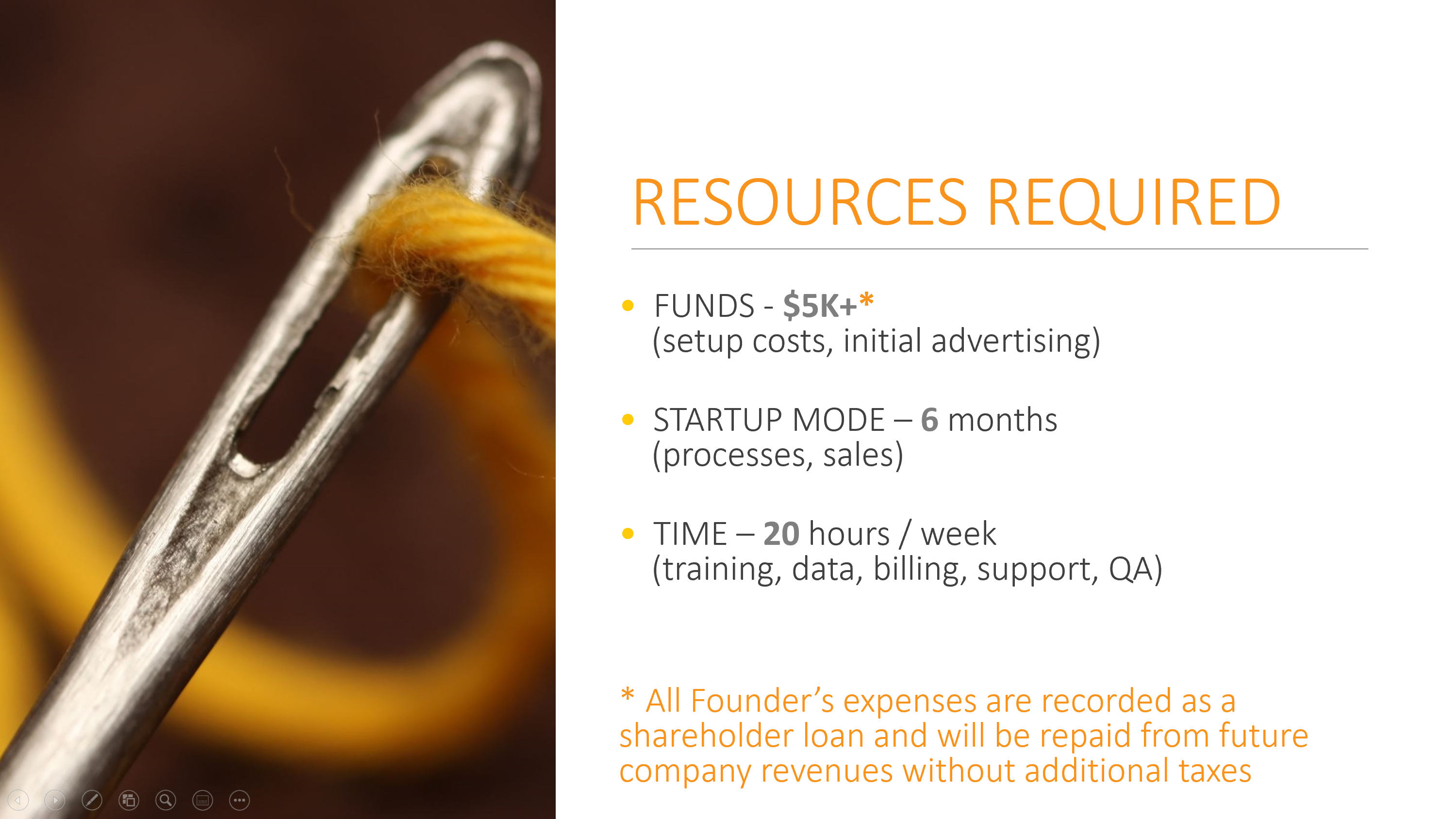 It is always difficult to estimate the initial costs of starting a business, but since this type of business does not require an office or inventory, the initial costs are minimized, with most spending being demo rewards to users and local online advertising (Google, Instagram, etc.)