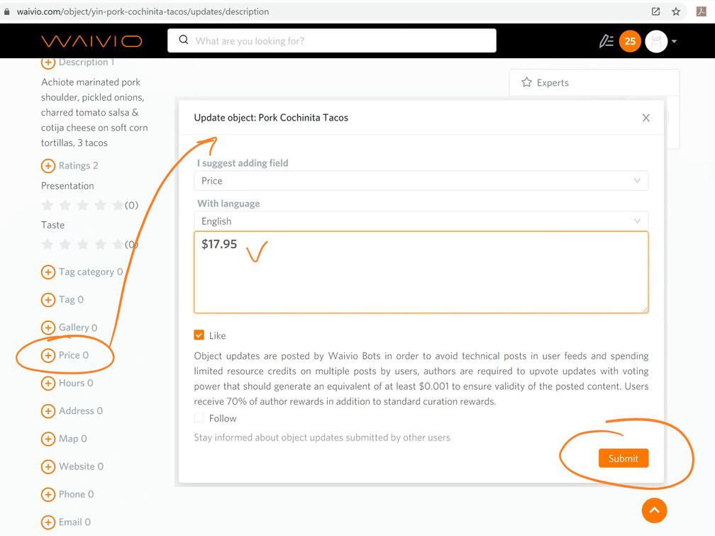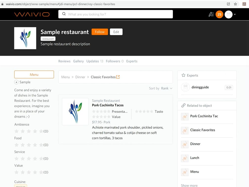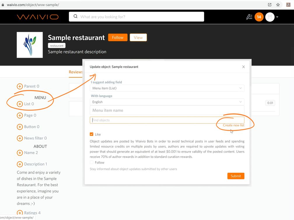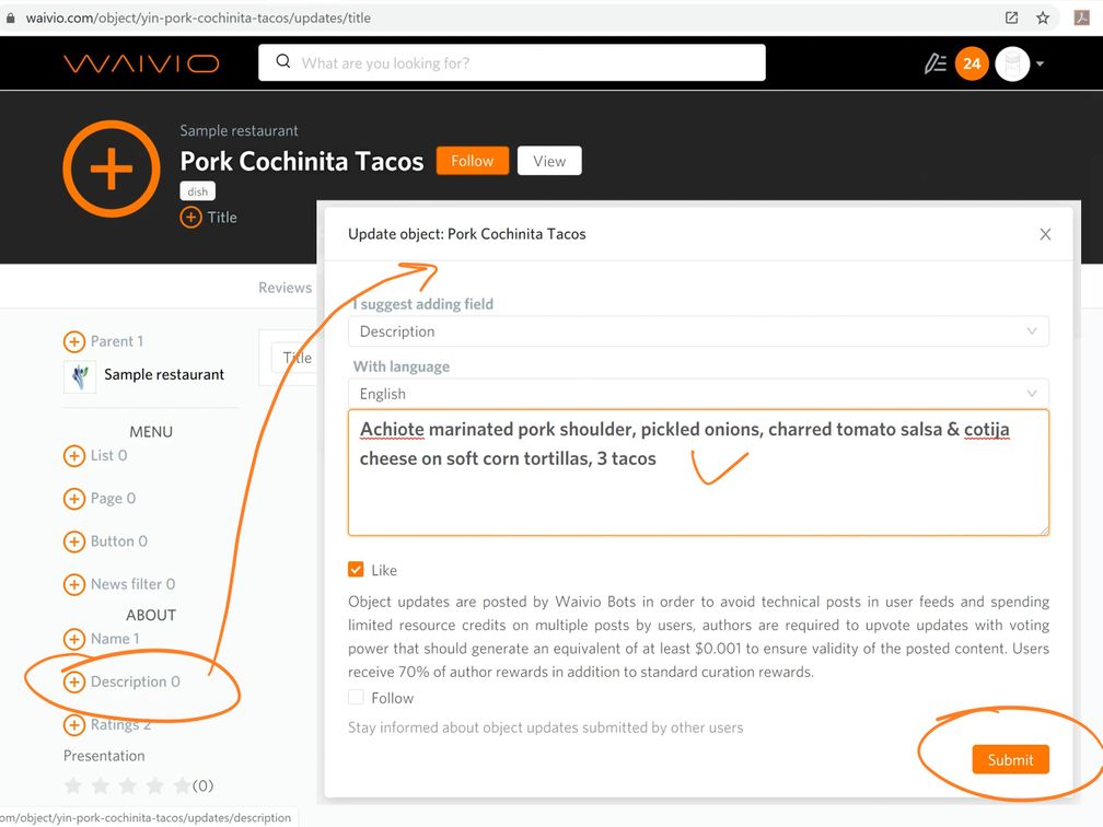 Waivio: How to add a menu to a restaurant listing on Steem blockchain