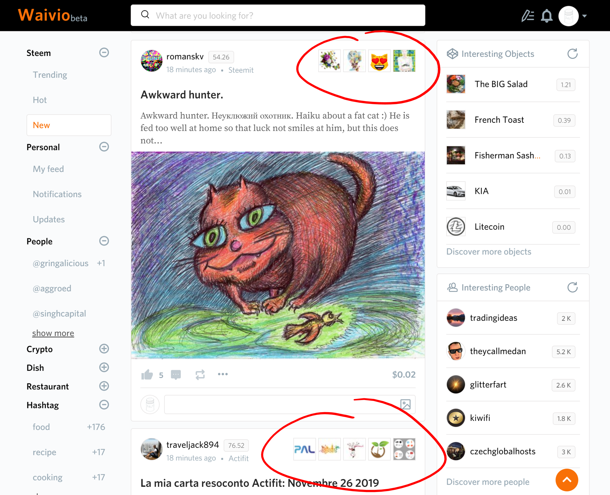 Hashtag icons are actively used on Waivio to give a quick visual summary of what the post is about: