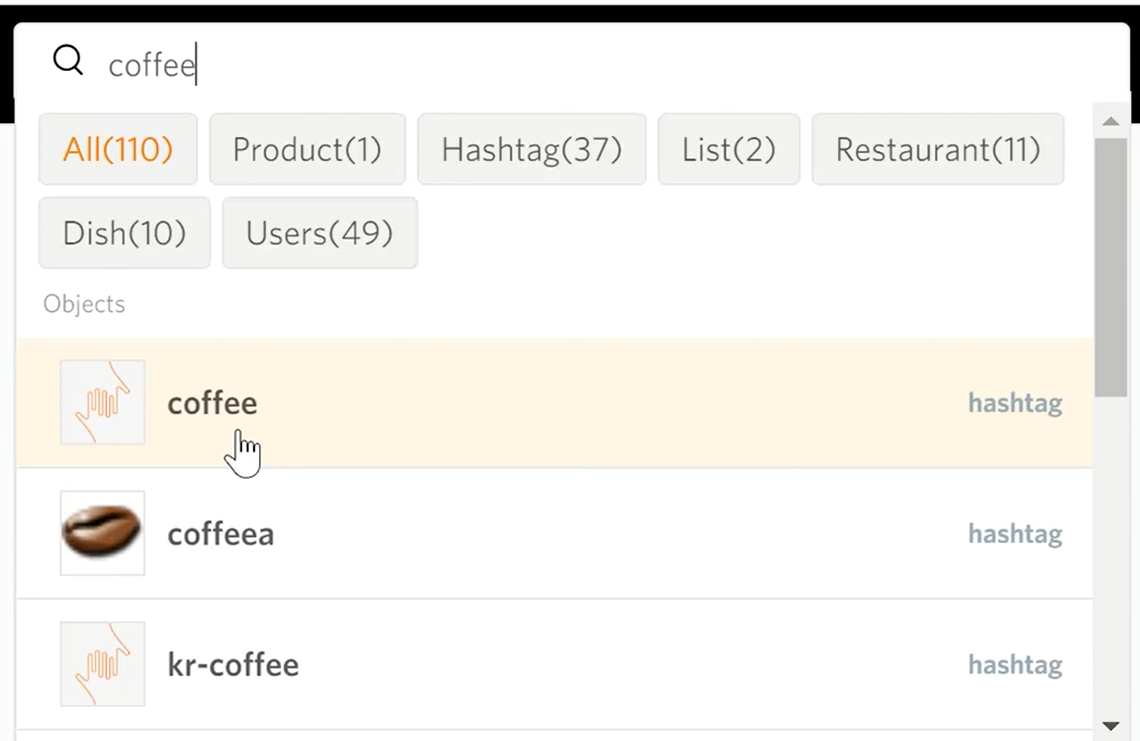 Now the icon is associated with the hashtag and all the posts using #coffee hashtag.