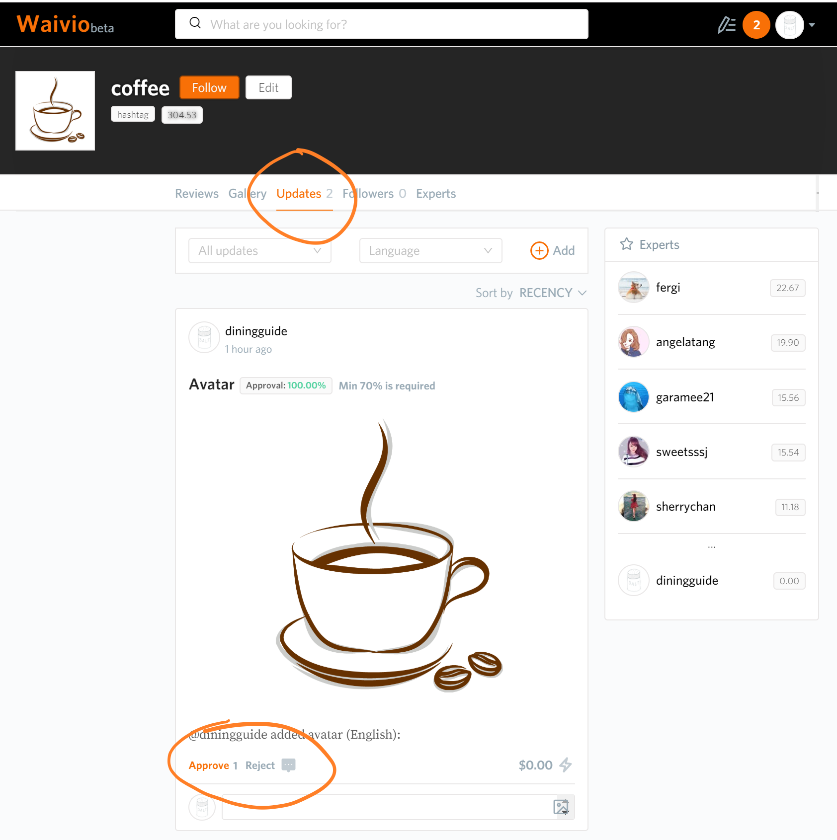 Other Steemians can also suggest different icons for the same hashtag. All these submissions will be aggregated in the Updates secition of the hashtag page. Users can cast their votes using Accept/Reject buttons on updates.