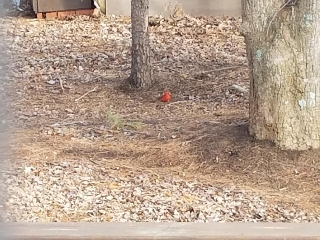 Today was a surprisingly warm day for January and a day to enjoy. It was too pretty to stay indoors so I tried to coax hubby in to going somewhere or doing something outside. Unfortunately, he wasn't feeling as good as I was so I decided to go for a walk at my usual spot. As I was getting ready to leave, Danny tells me to come look at the Cardinal in the back yard. It was nice to see this little fellow and this picture doesn't do it any justice at all. This little guy had such a bright red color to him but it's not showing in the photo, maybe because he had to zoom in so far?