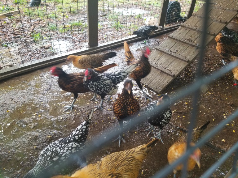 The Bear's bantams are enjoying the cooler weather. When you walk up to them at first they run to the back of the pen but in a few seconds they run back to you hoping for a pet, or a treat. Very friendly little birds.