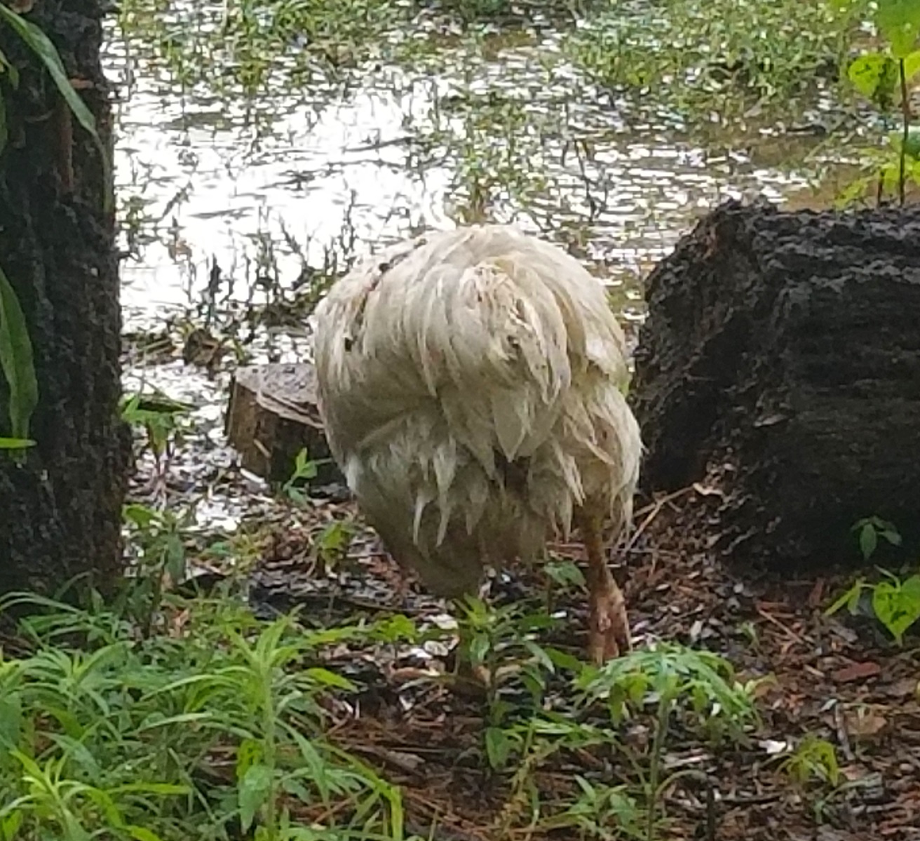 A wet chicken...why are they always too dumb to seek shelter?