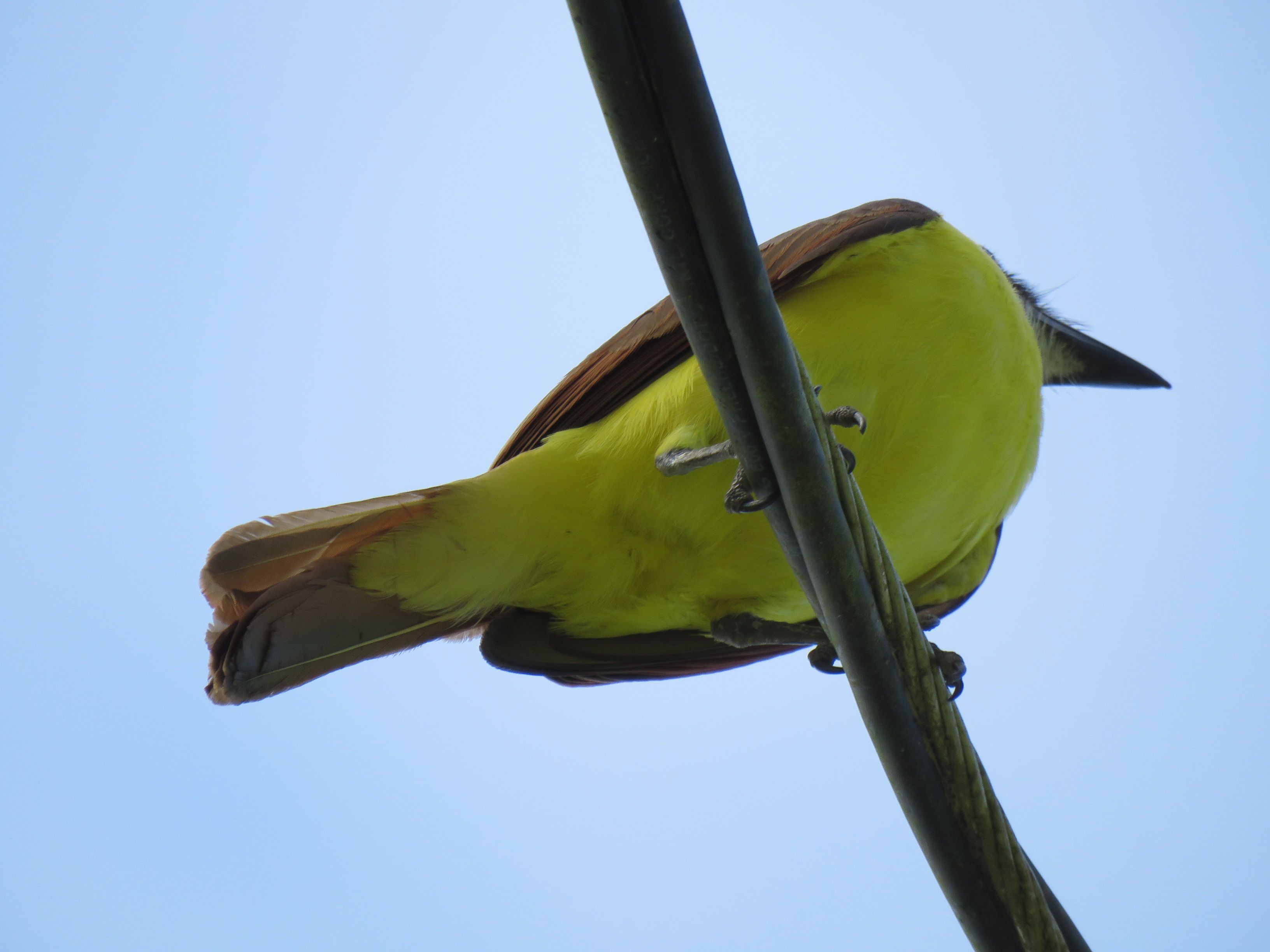 Hello and thank you! That little yellow bird was actually singing whilst his head was down in the nest building! Just magical.