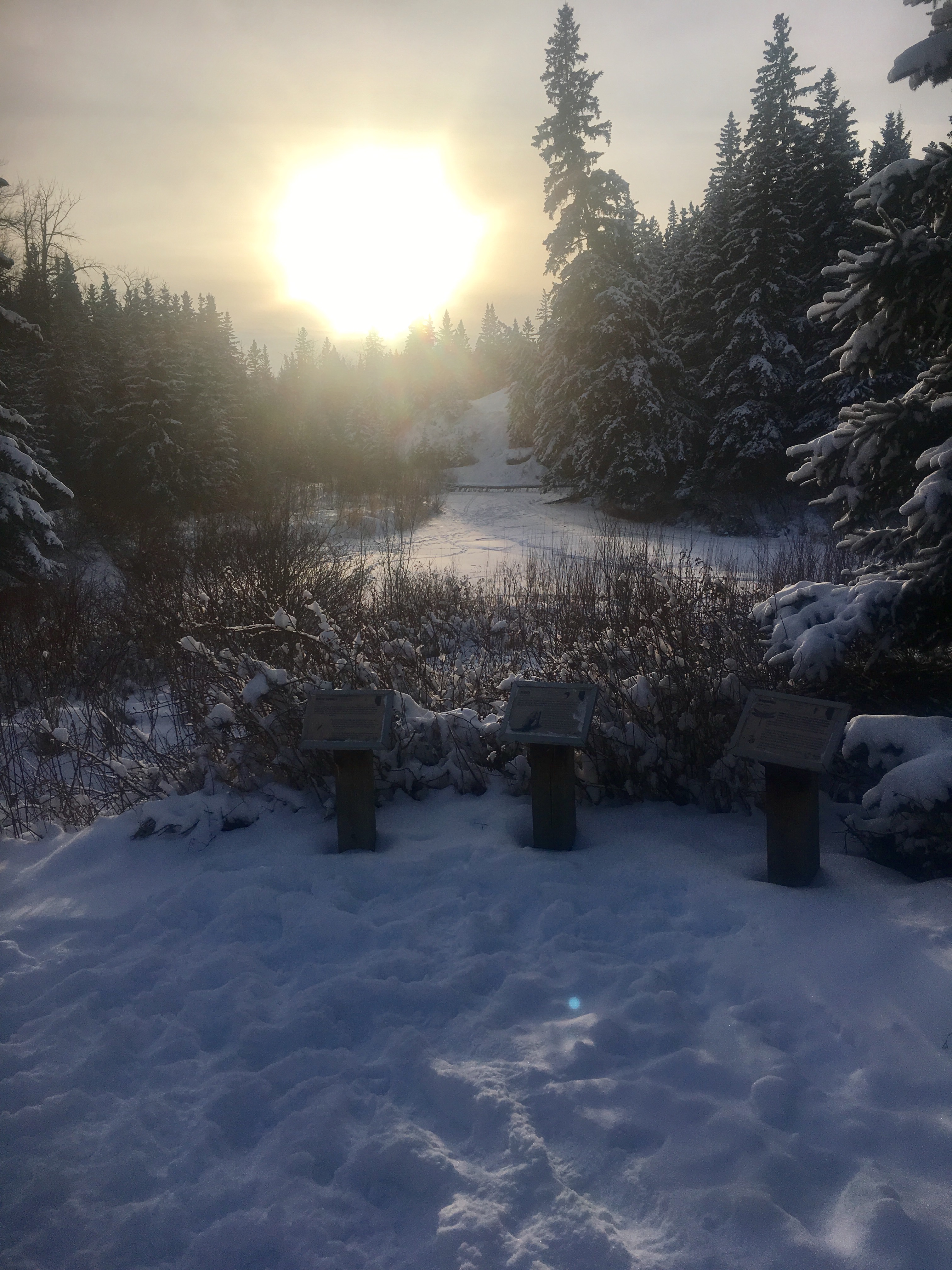how cold was it? it was -20 for us yesterday. This morning its warmer with dancing snowflakes. They arent dancing very well, I think they are confused as they arent all going in the same direction O.o The sunset picture is a beautiful one. And I love the snow hugging the tree. This blog made me laugh. Makes for an uplifting morning. ^_^