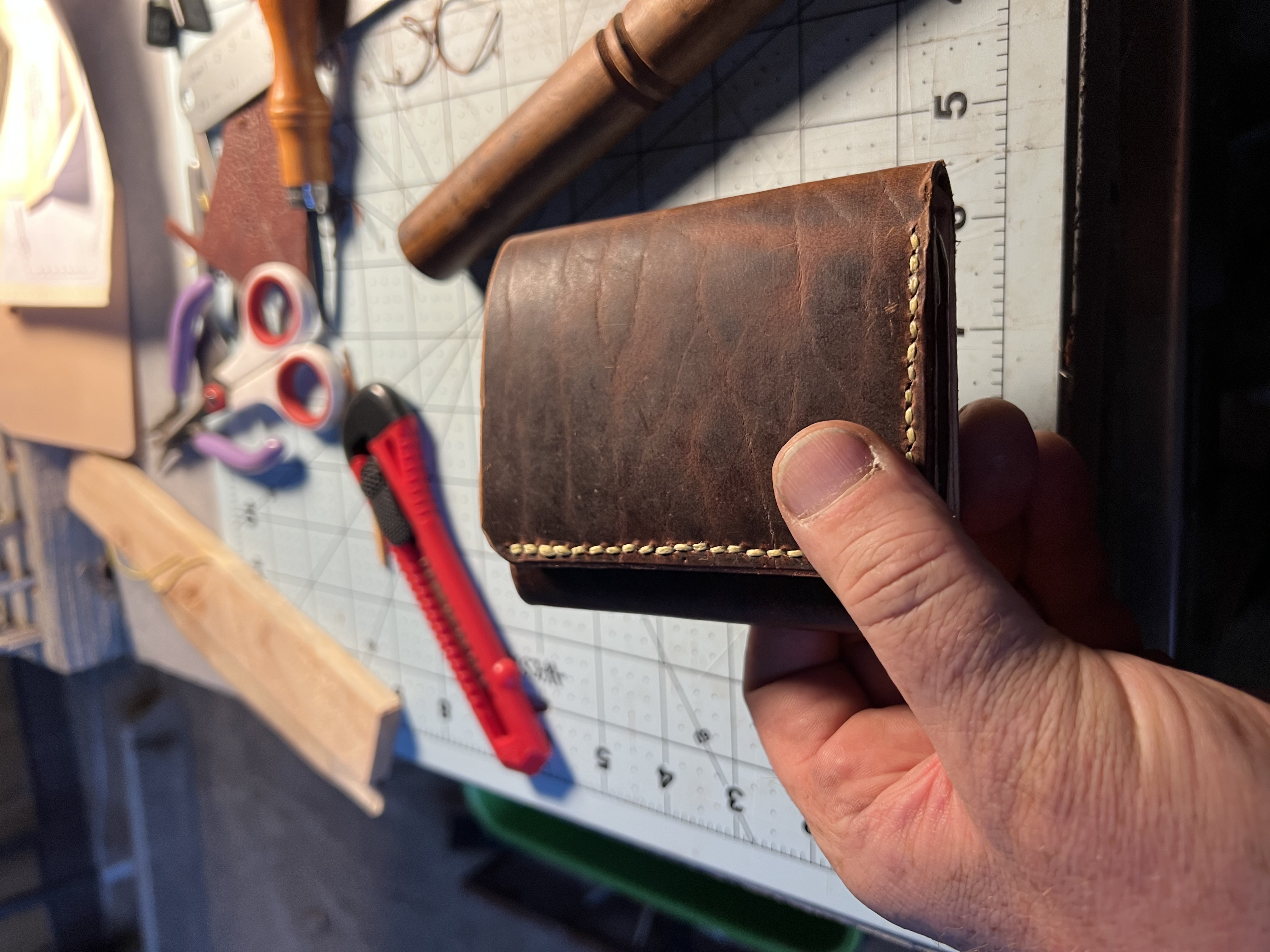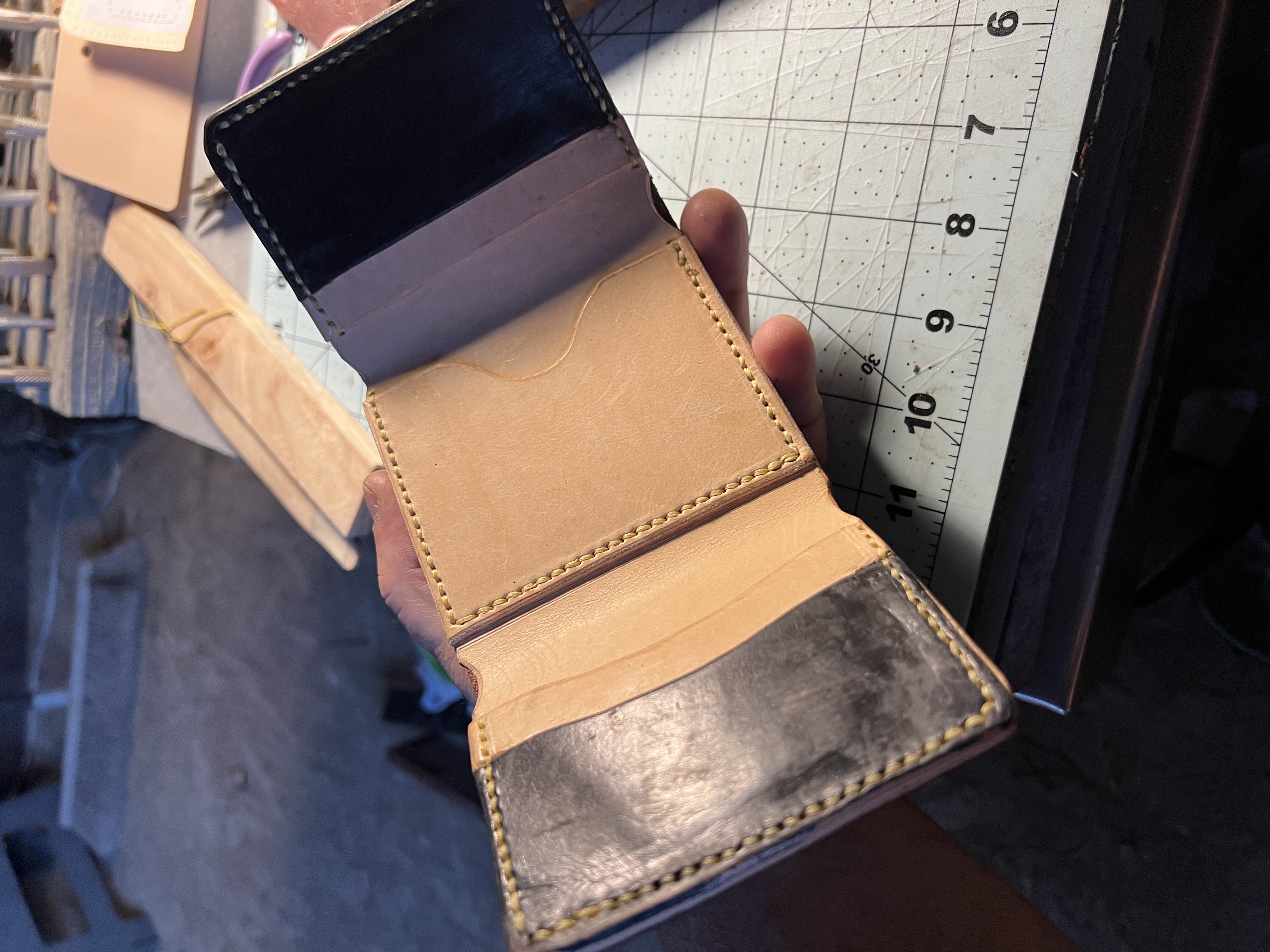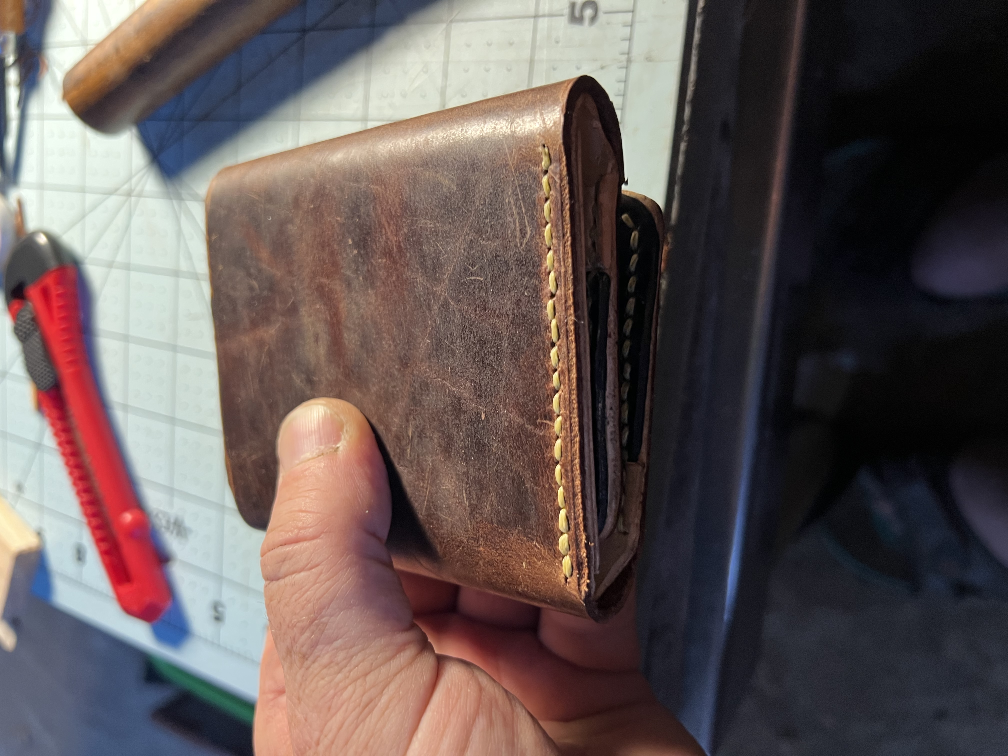 Another wallet. Trifoldixoiru (47)in #wallet • 3 years ago Hi everyone, I worked on this for a few hours. My stitching is still fairly poor I think. With time. Thank you. John #leather #leatherwork