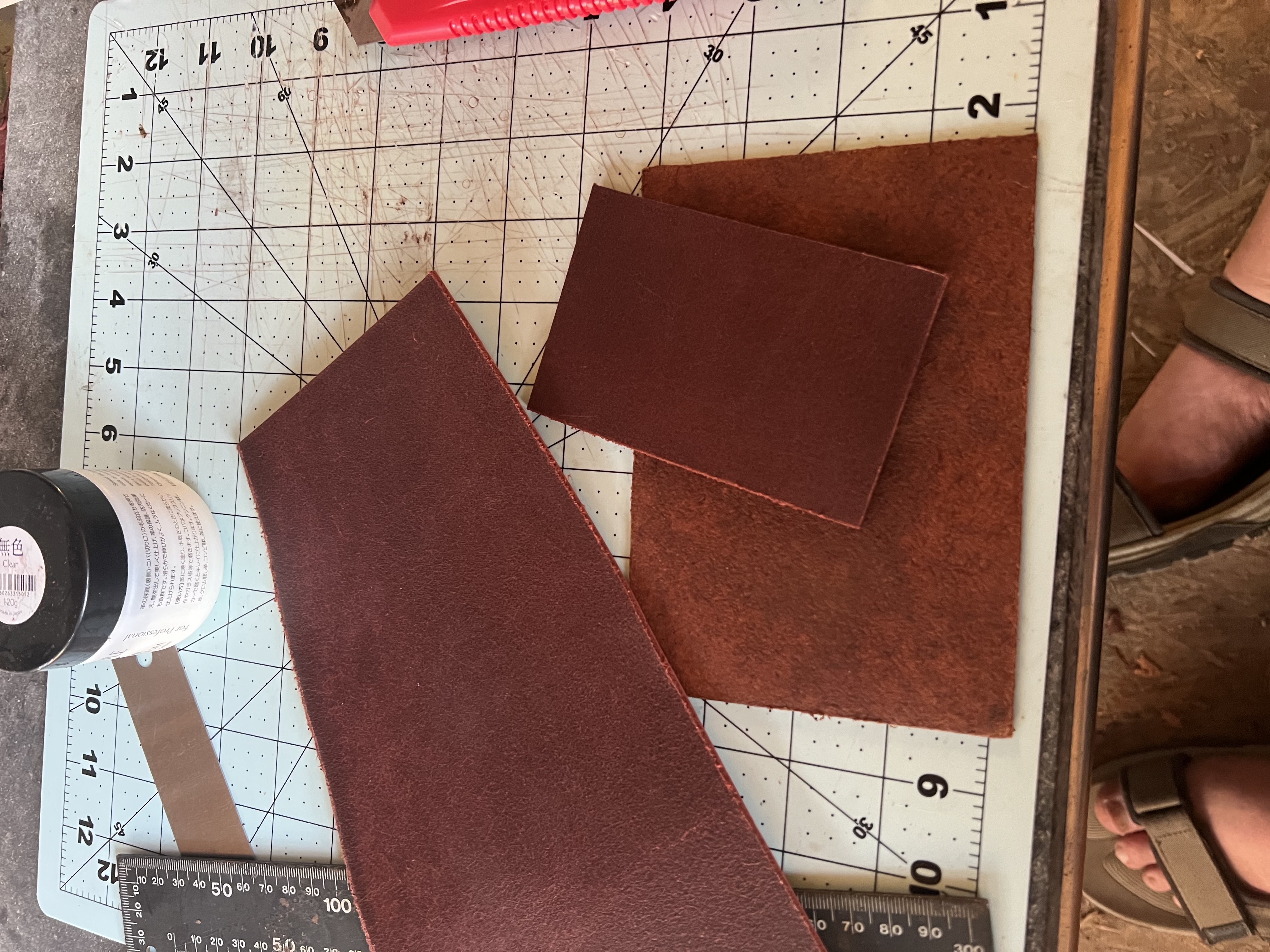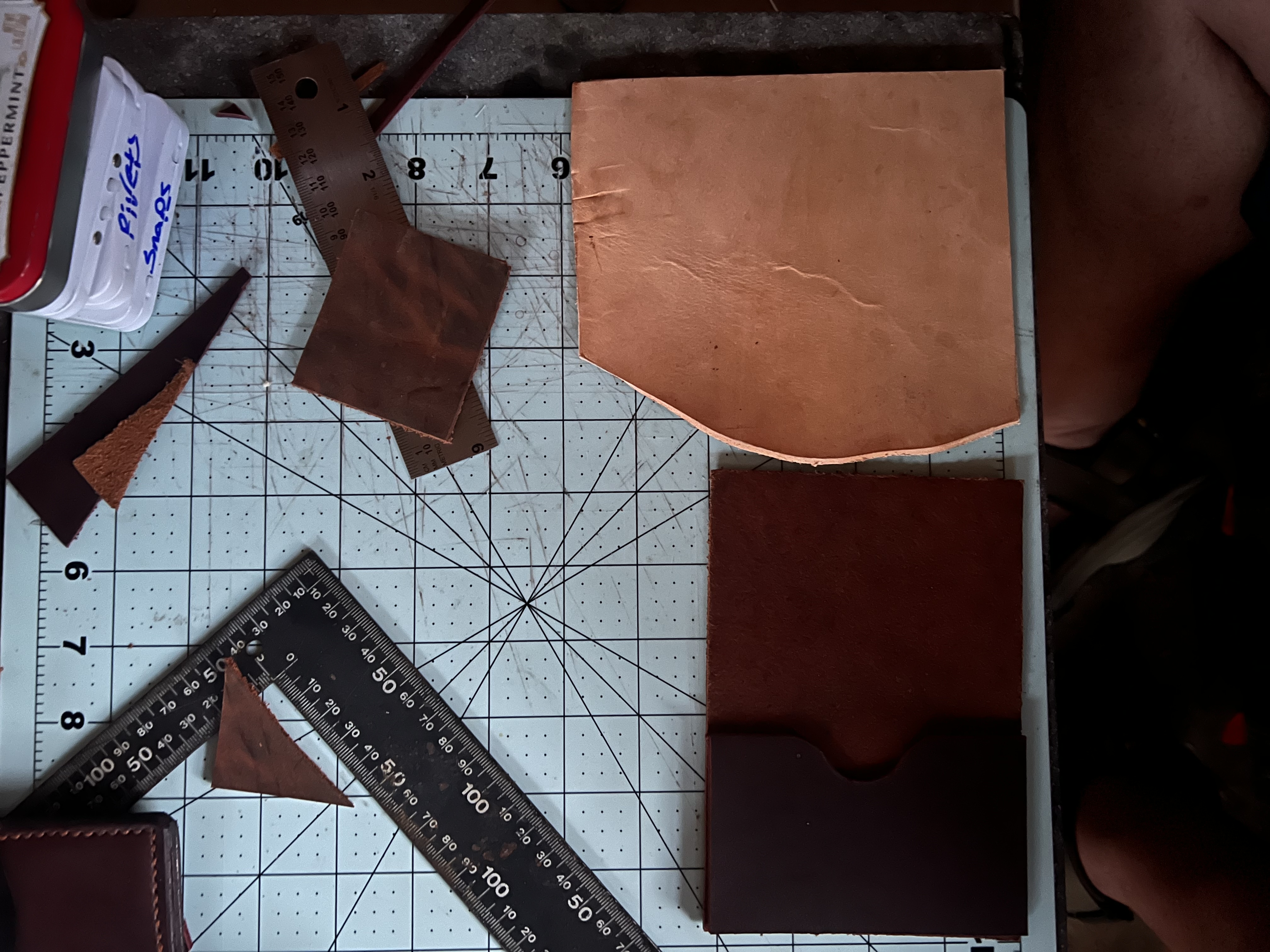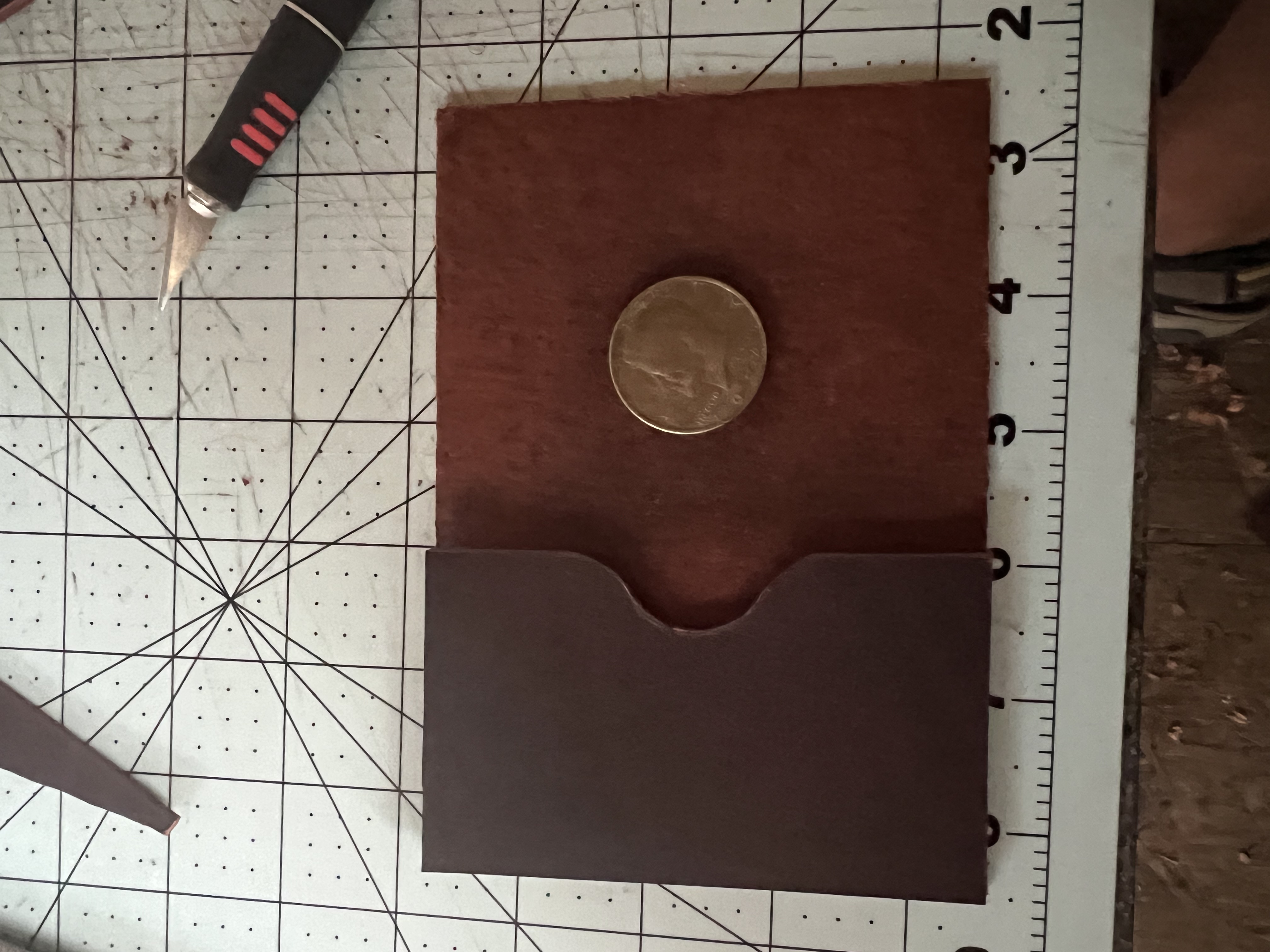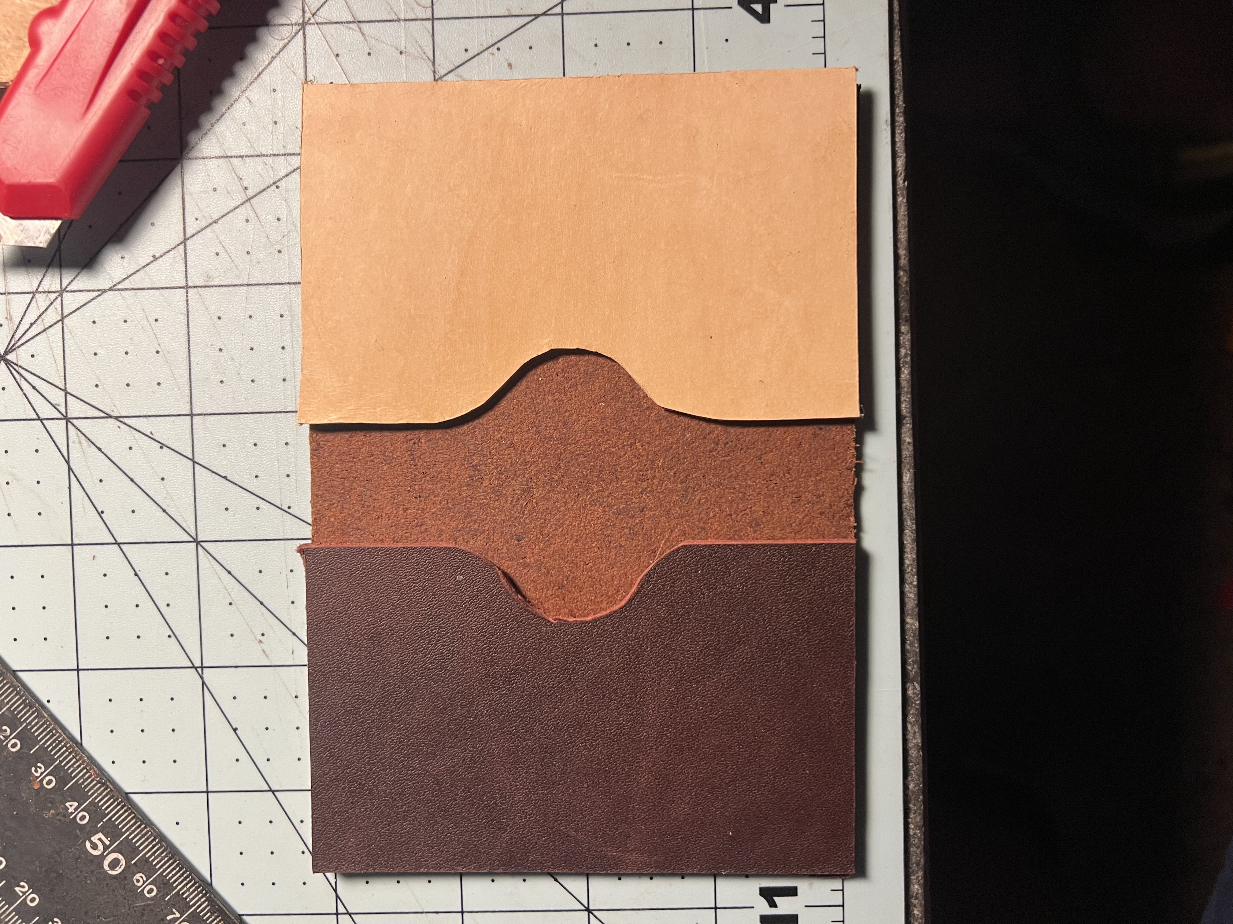 Hi everyone. Here is my first wallet. I struggled a bit over the design, but I think it is good. I used a 5oz leather for the outside and the outside pocket. The inside half pocket is a 3oz. And my id pocket is made from a 5oz latigo leather.