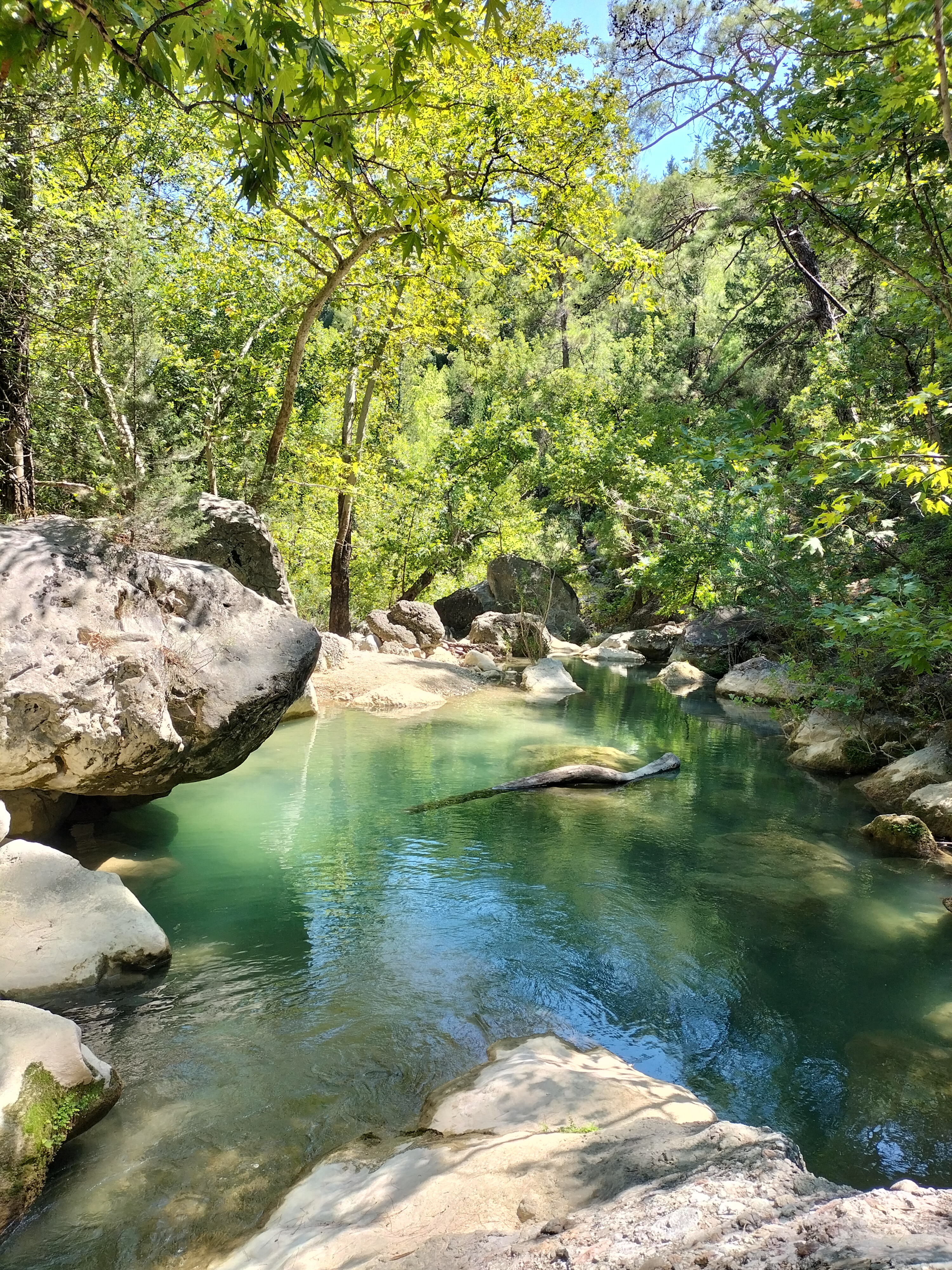 I'm amazed that I'm traveling when the sun is at its peak. There are steep cliffs scattered around here. I follow the water flowing between these rocks and walk without knowing where I am going. The voice inside me is pushing me. I'm curious and a little excited. I continue to walk with difficulty among the big stones, smelling the sweet scent of nature. Let me show you the exquisite view that I encountered at the end of the road.