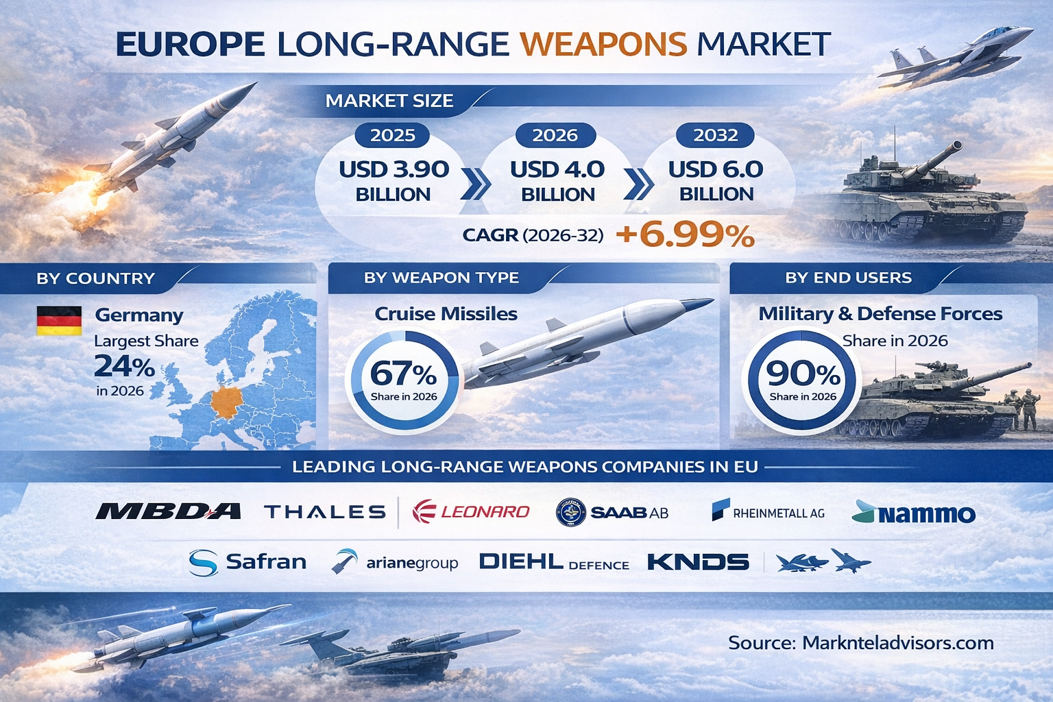 View Full Report (All Data, In One Place):https://www.marknteladvisors.com/research-library/europe-long-range-weapons-market-report.html (Explore in-depth analyses, technological trends, and investment patterns.)