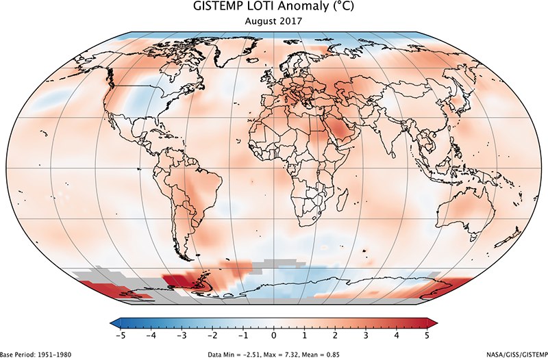 More or less general climatic and weather observations on Earth are conducted since 1880. Scientists constantly collect and systematize last data, comparing them to modern. Now for creation of an all-planetary temperature picture data of more than 6300 meteorological stations on all Earth, including sea are studied. The analysis of data for August, 2017 has shown that he became the second among all August since 1880 on temperature, having been inferior only to August, 2016 which was warmer usual on 0,99 degrees Celsius. August, 2017 was warmer than an average by 0,85 degrees.