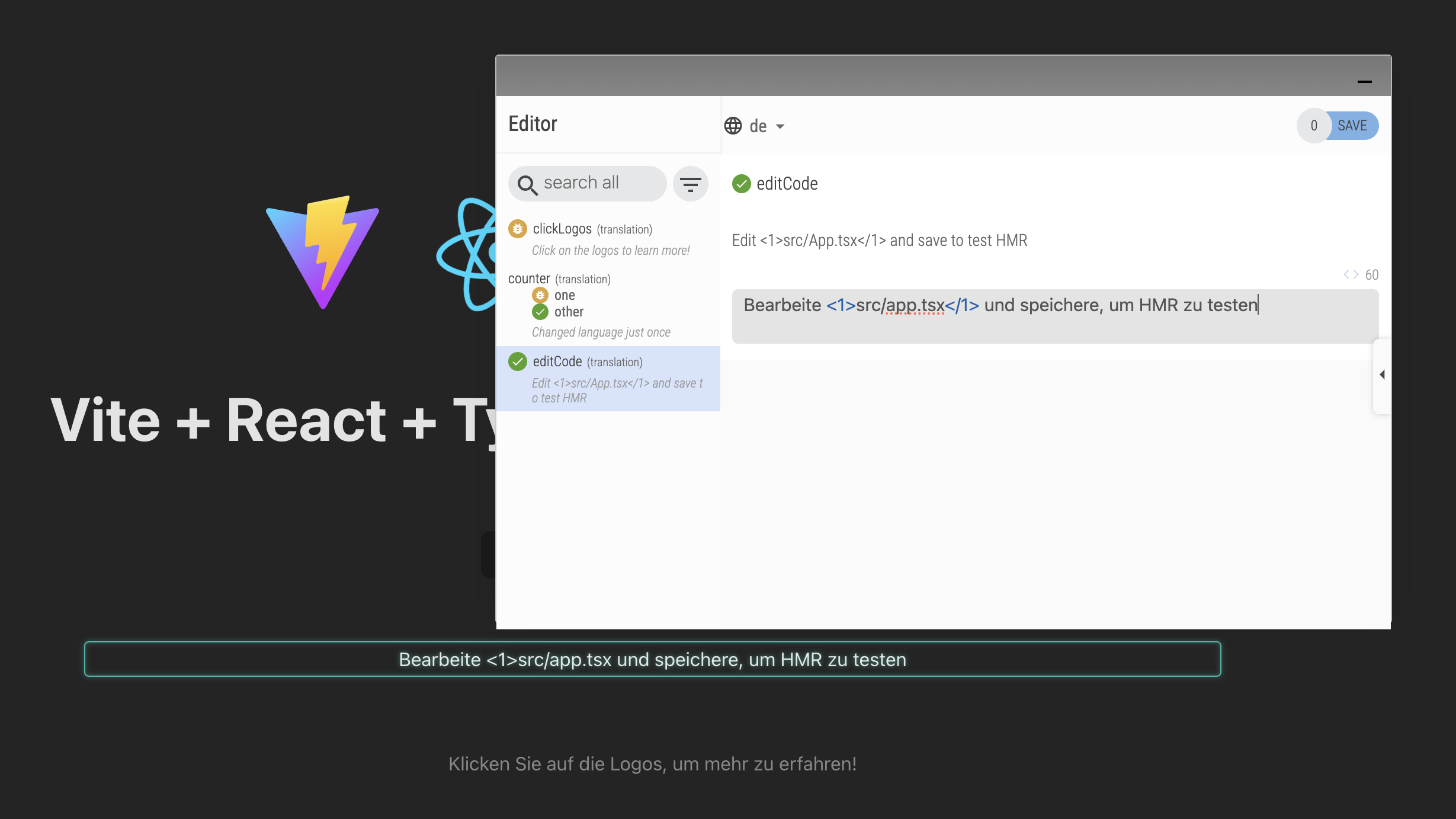 With the help of the locize plugin, you'll be able to use your app within the locize InContext Editor.