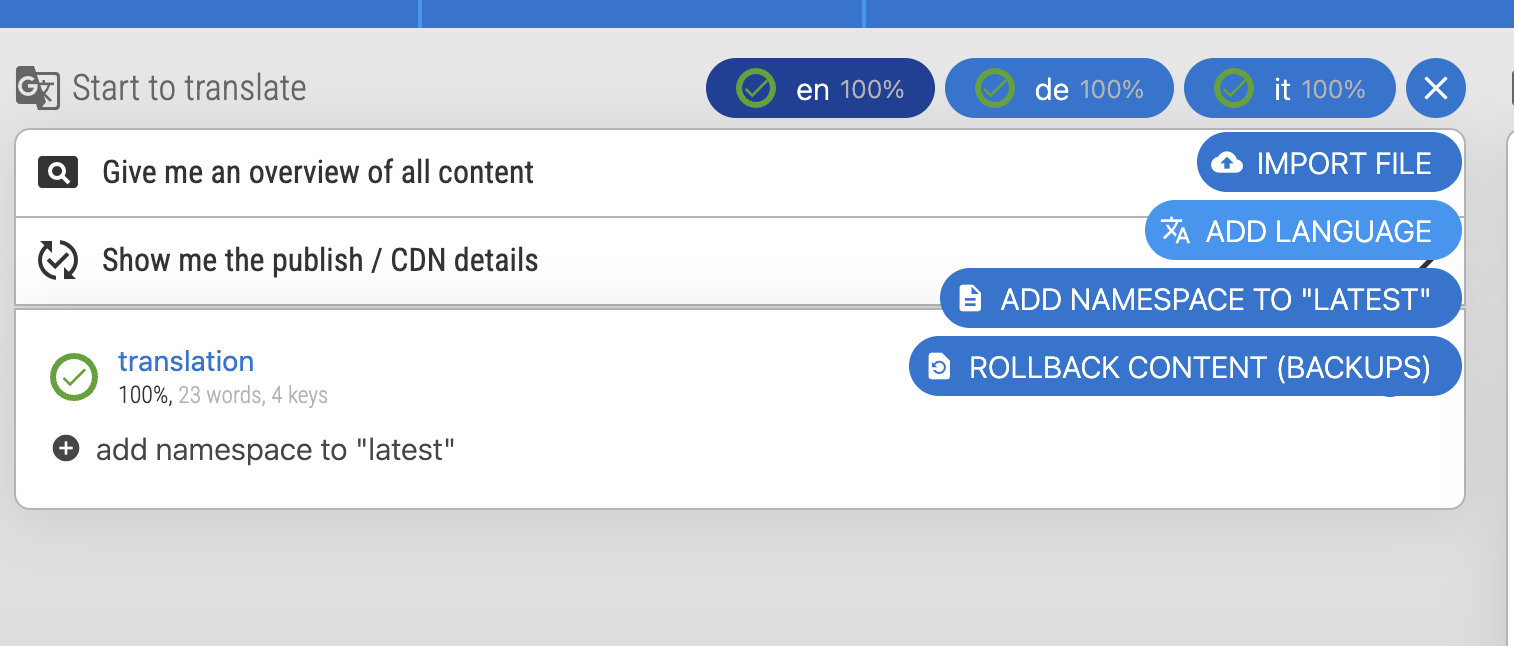 Since we’re fetching automatically all available languages directly from locize, we can add new languages without having to adapt the code or without do redeploy our app.