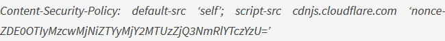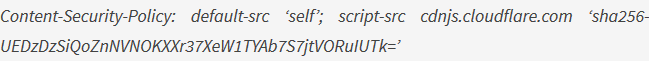 "Content-Security-Policy: default-src ‘self’; script-src ‘self’ cdnjs.cloudflare.com"