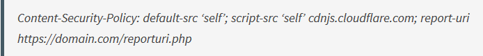 This header will tell the browser that by default, it can load any type of content from your domain, but scripts can only be loaded from cdnjs.cloudflare.com. If you load a script that isn’t from there while the above HTTP header is in place, the browser would refuse to load it: