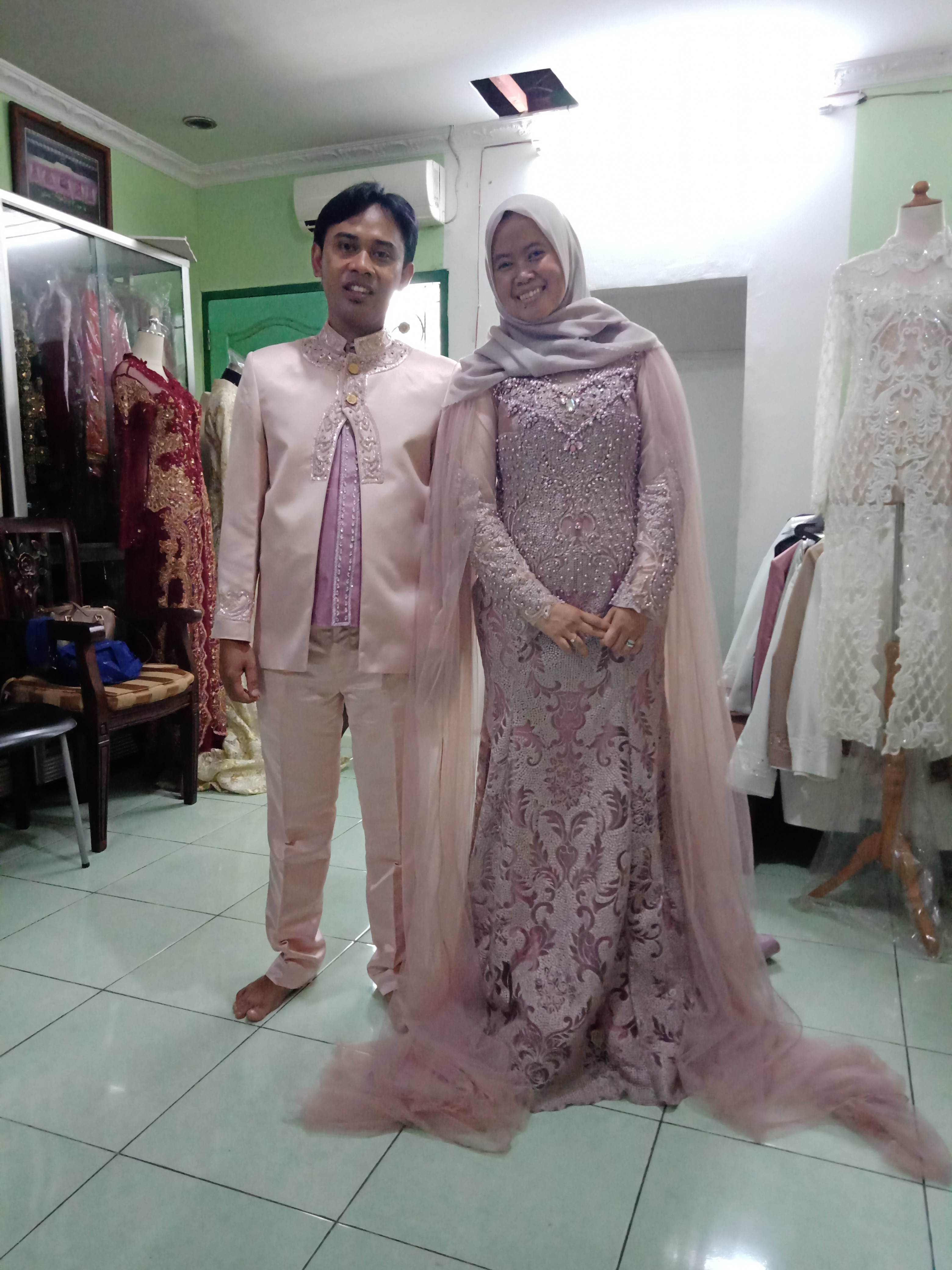 Fourth, Fitting the dress… we did this on December 24, 2020.. Trying two different types of dress for wedding party.. yeps,, only two.. we rent the dress for the party, but we made the dress for the marriage vow..
