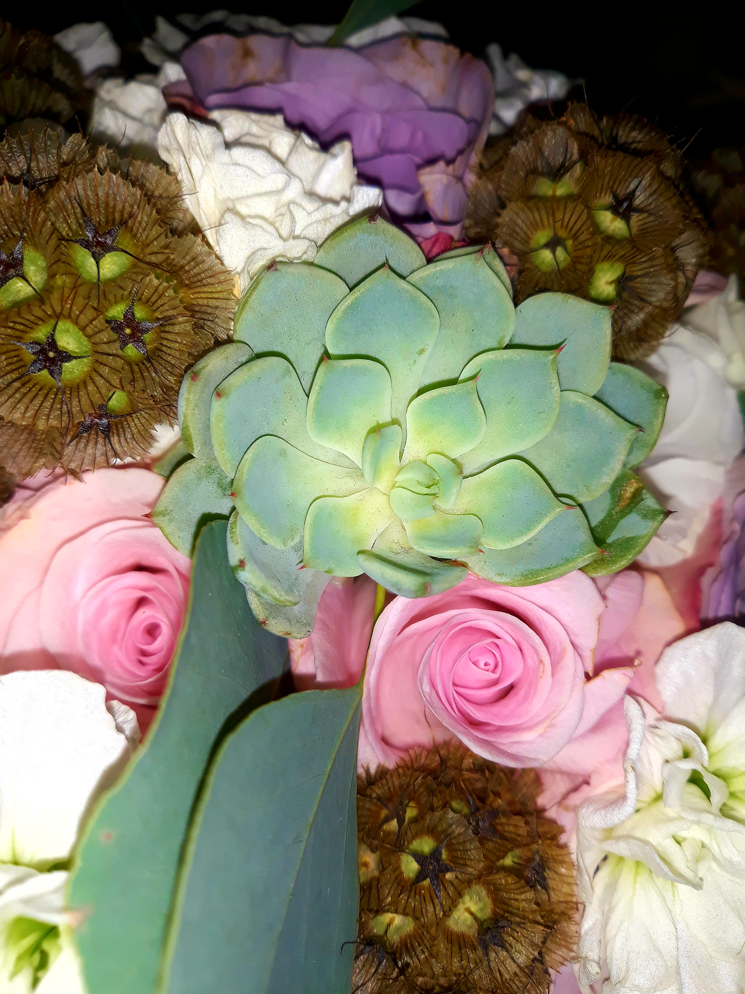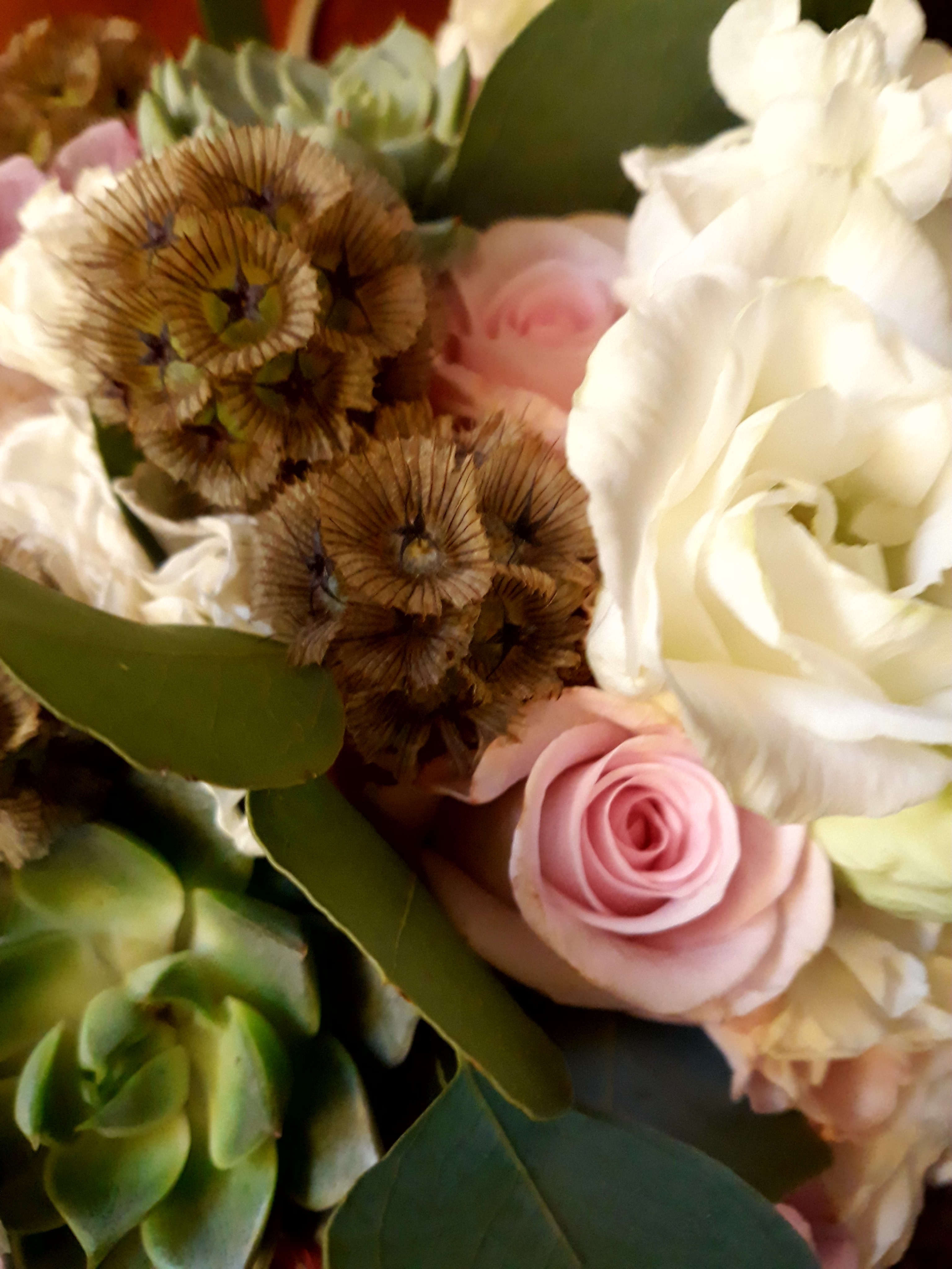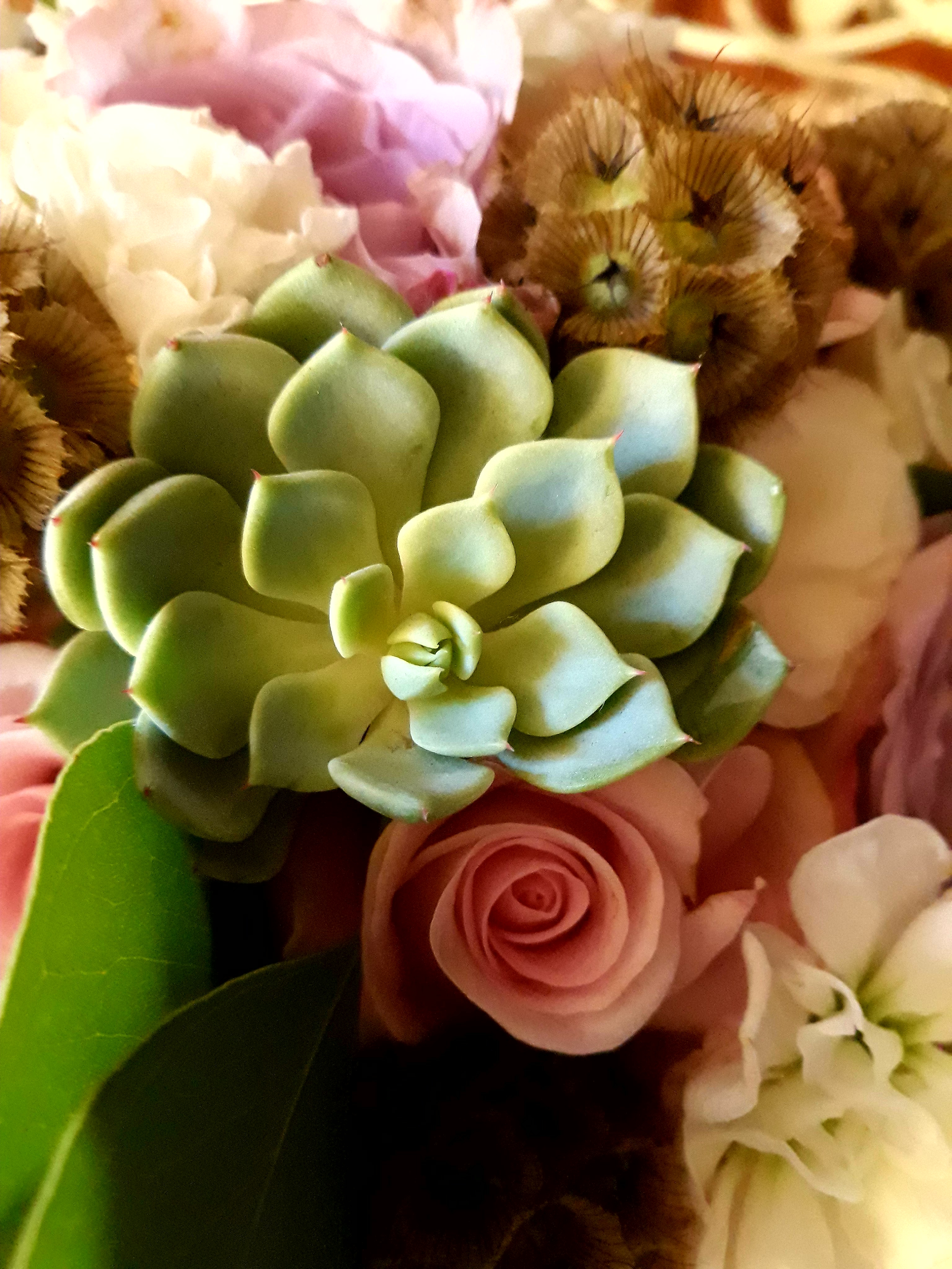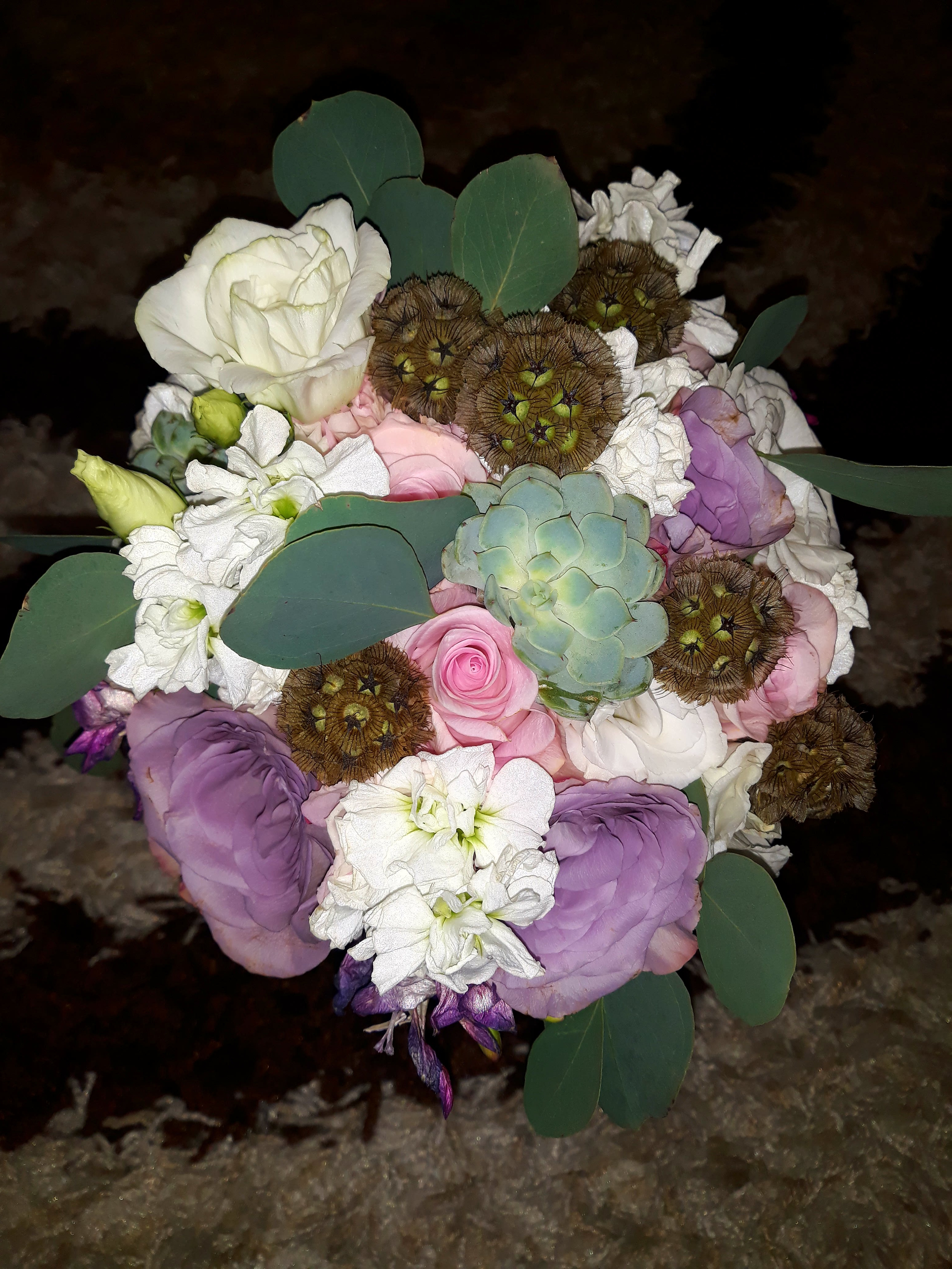 David Austin roses – the lilac and purple symbolize enchantment and love at first sight while the pink symbolize gratitude, appreciation and admiration