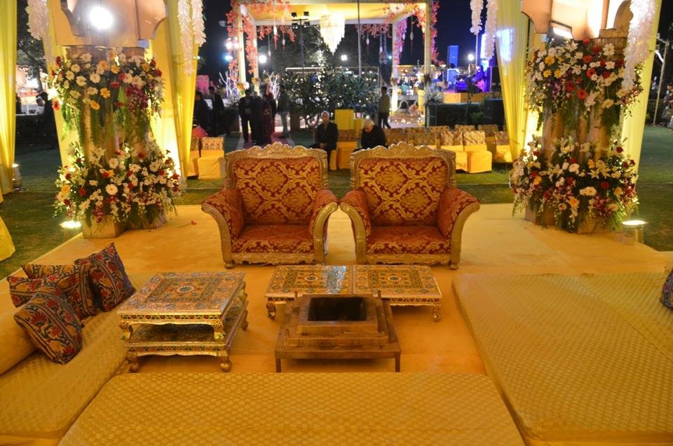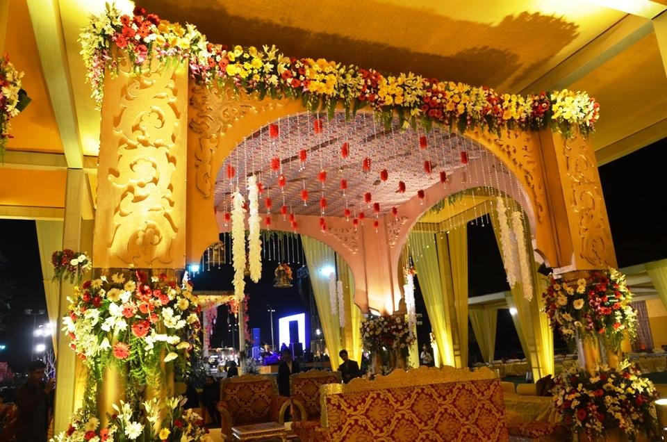 Today's #colorchallenge is yellow so I presented here yellow color wedding Indian mandap. The mandap is made inside of the big size gazebo. The complete mandap is decorated with yellow colored drapes and flower bouquet. The seating arrangement for guests are done at all sides of mandap.
