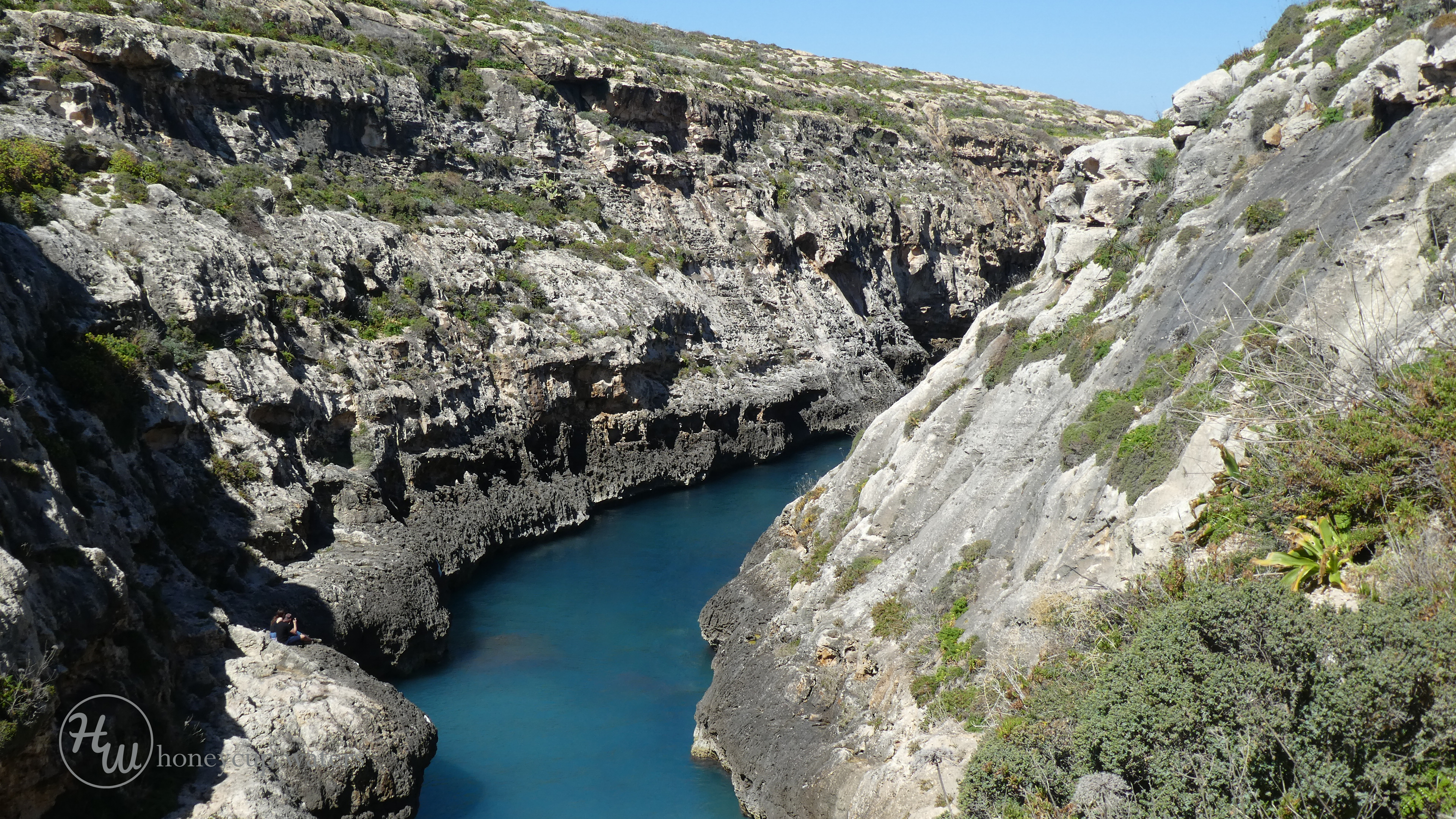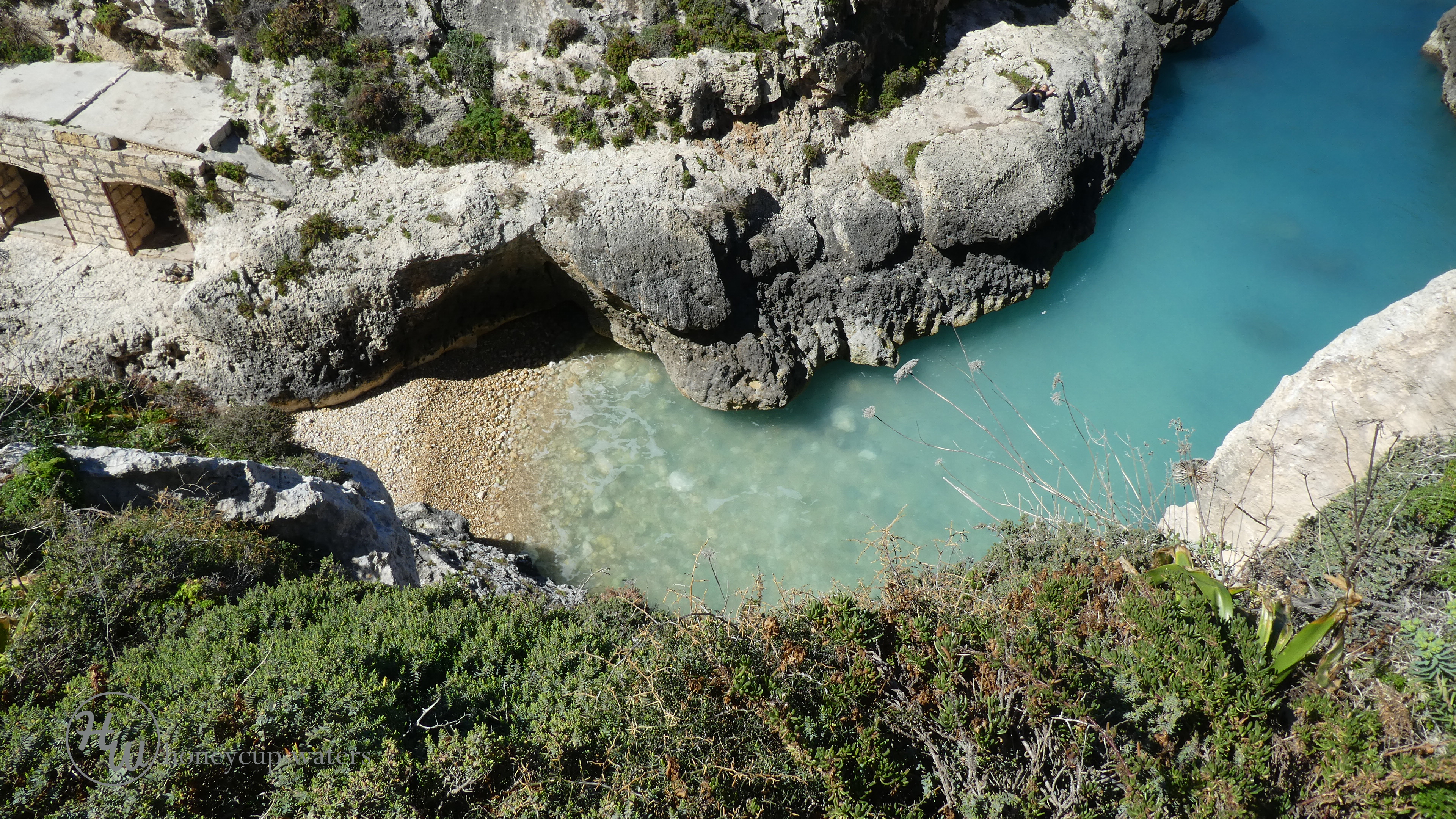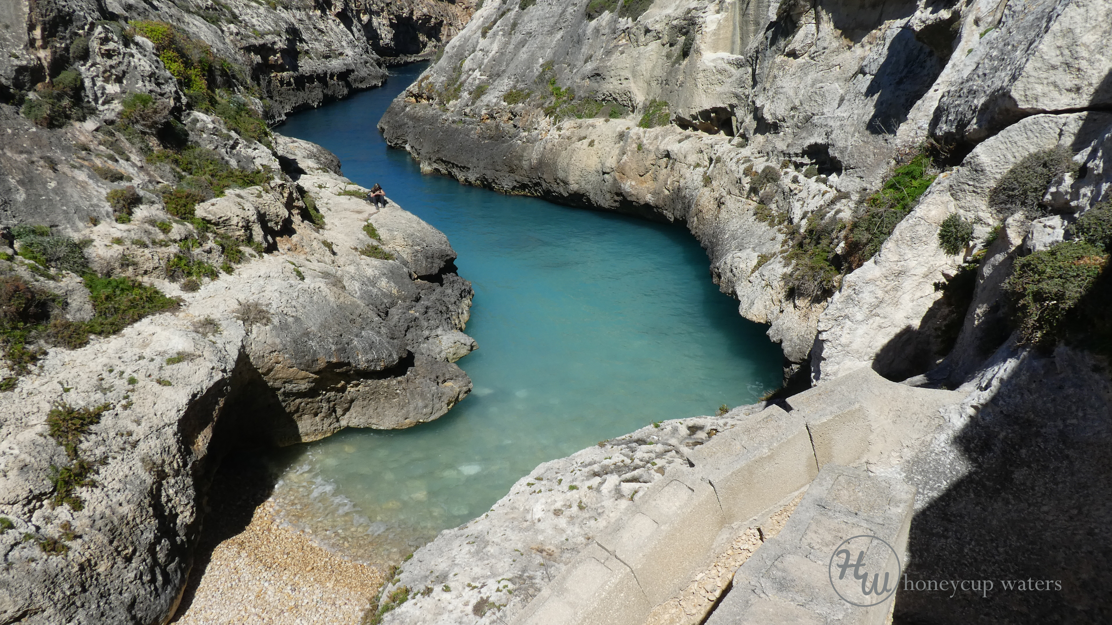 The narrow shelves on the side are where sunbathing and picnics take place if you look closely where the sea bends left a couple are sitting having a picnic.