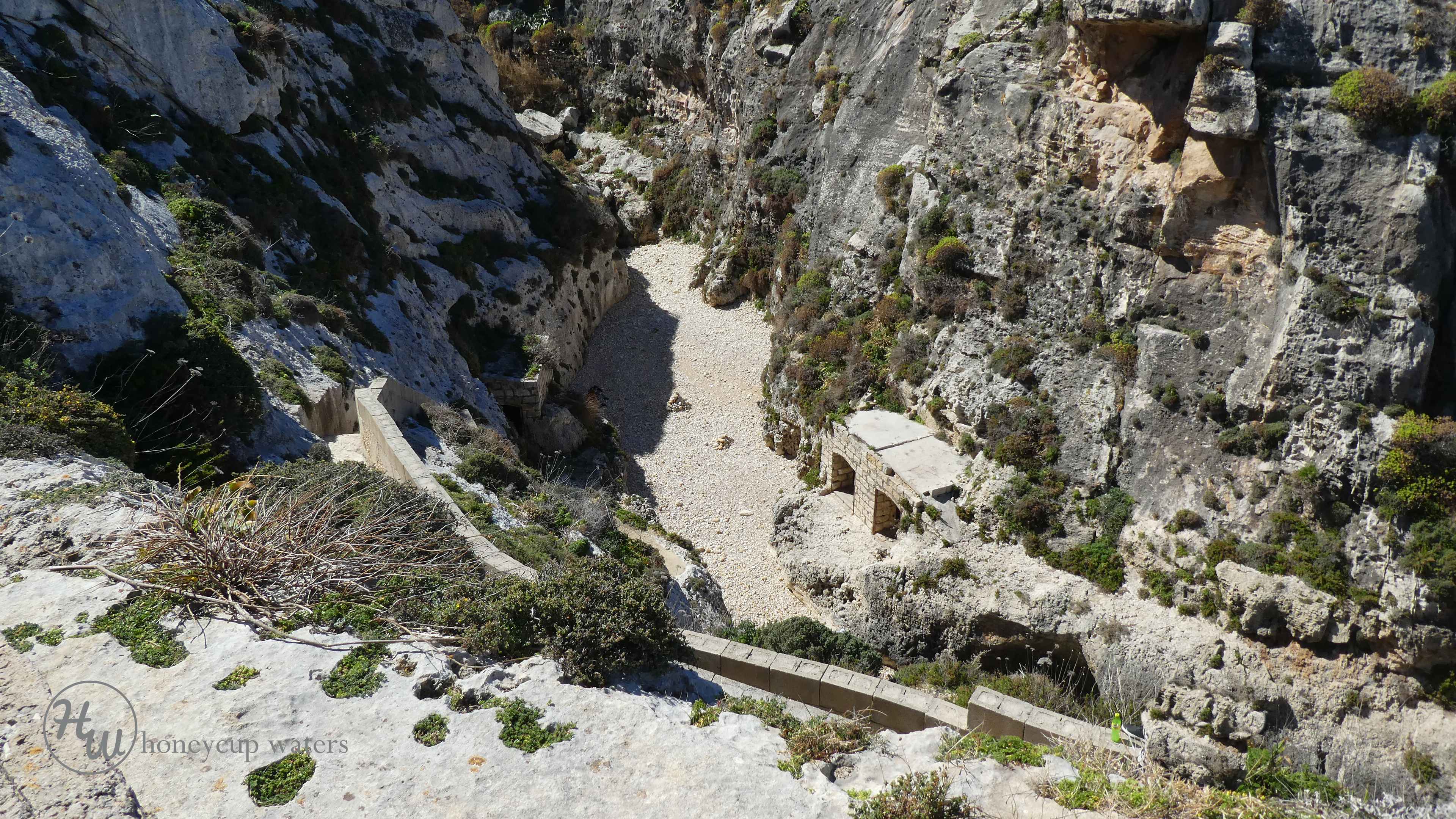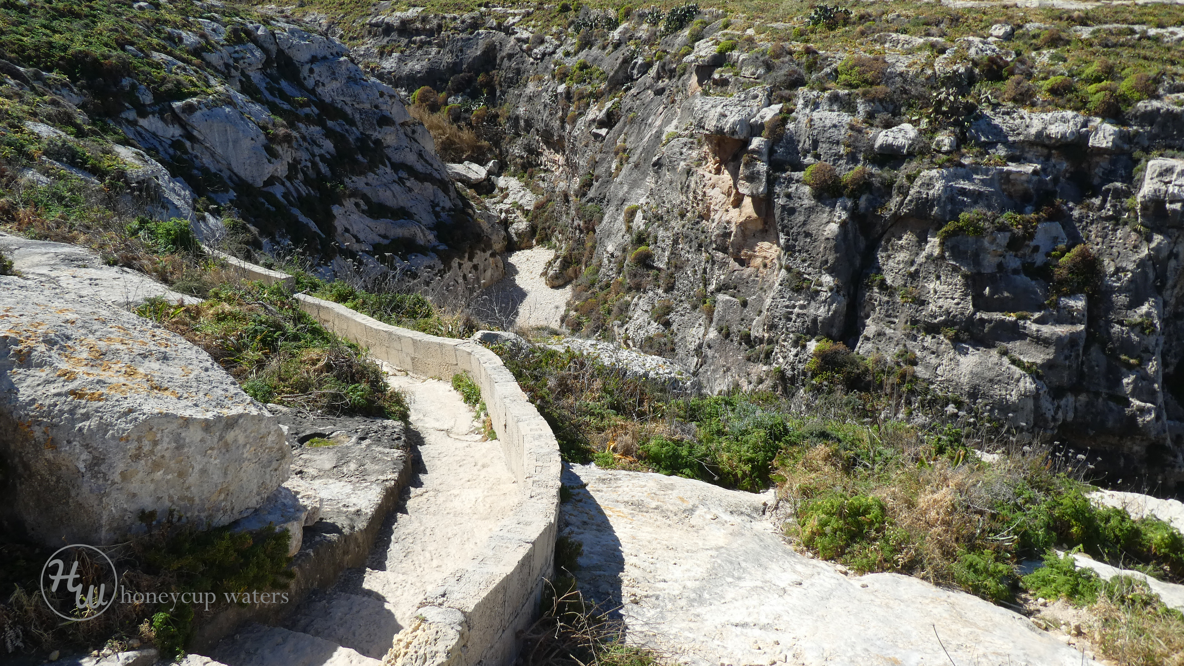 The start of the steps to the valley floor. Not very wide and quite rough.