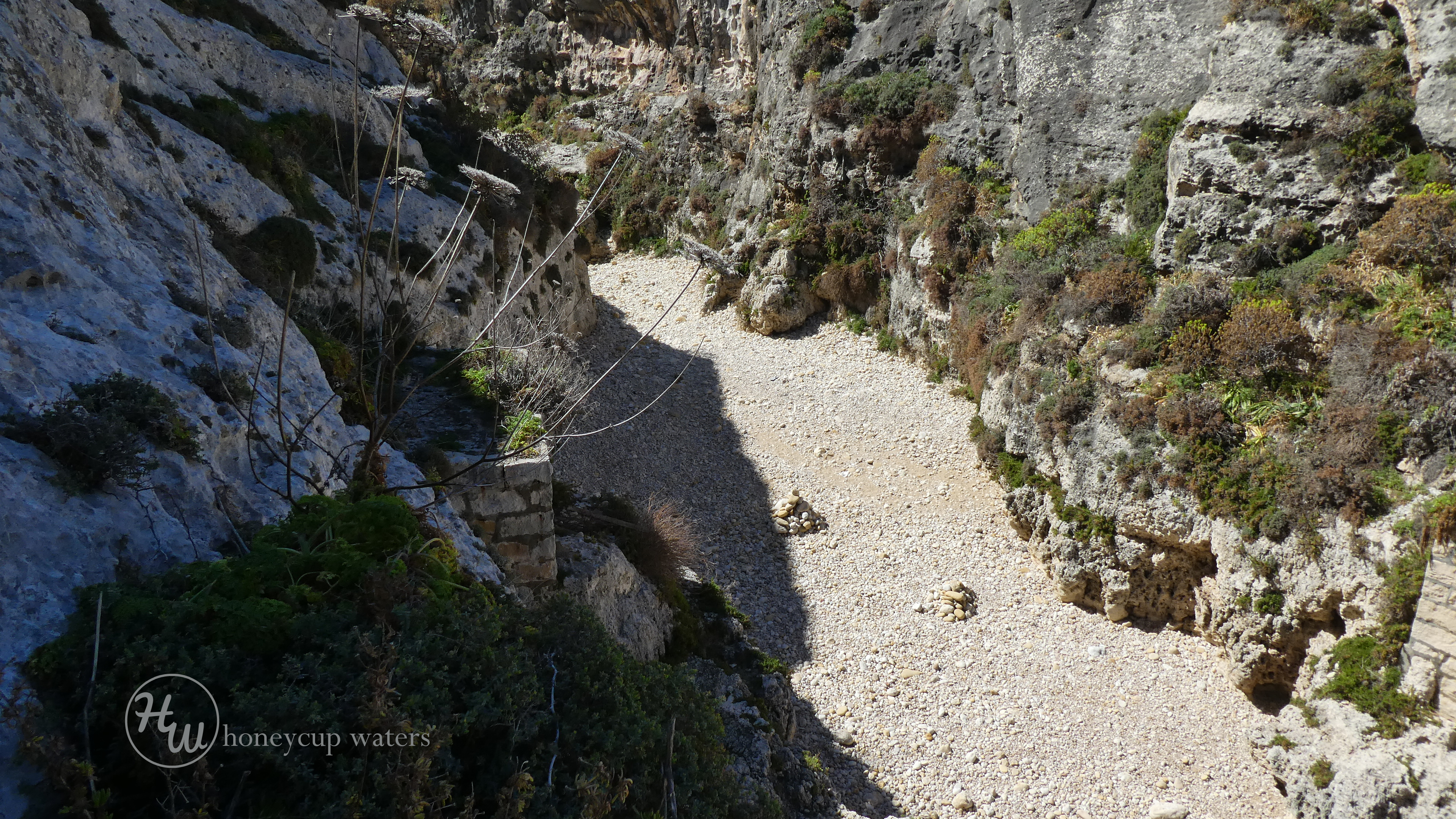 Last Friday we had a brilliant day so a chance to walk so I chose the Ghasri Valley. It's a very short valley at this end and can be accessed along its sides and down a rough set of steps to the bottom where the sea meets a small gravel beach.