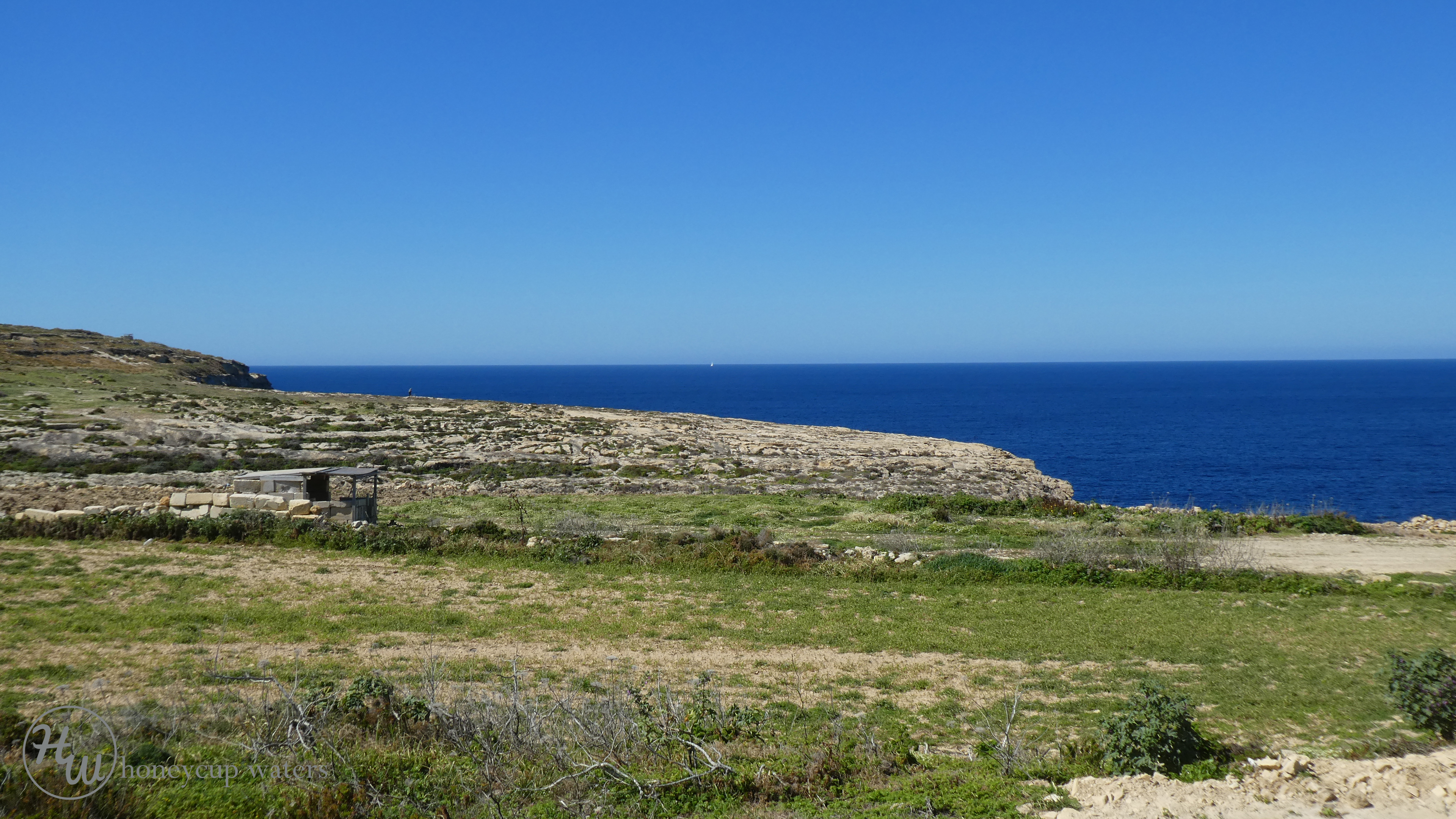 The landscape of Gozo is rugged and fairly barren as can be seen. This is where the valley begins.