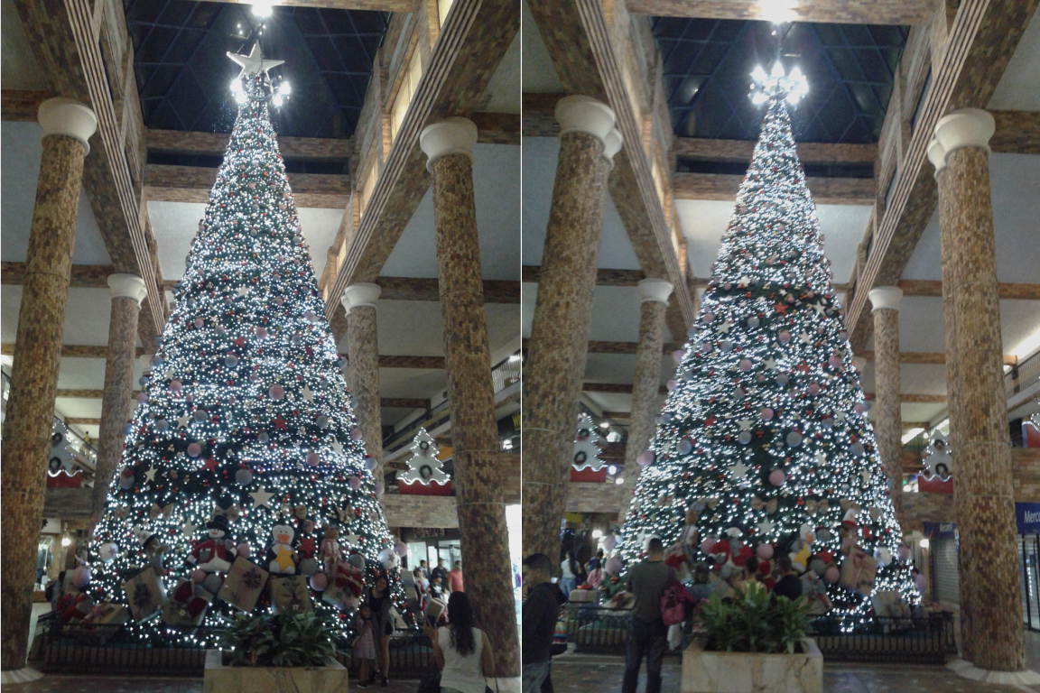 In this regard, my wife and I decided to go for a walk through the most emblematic shopping center in our region: La Cascada. Our country has been suffering in many areas and electric has not been the exception. However, there are still places where they place the traditional ornaments that have been internationalized.