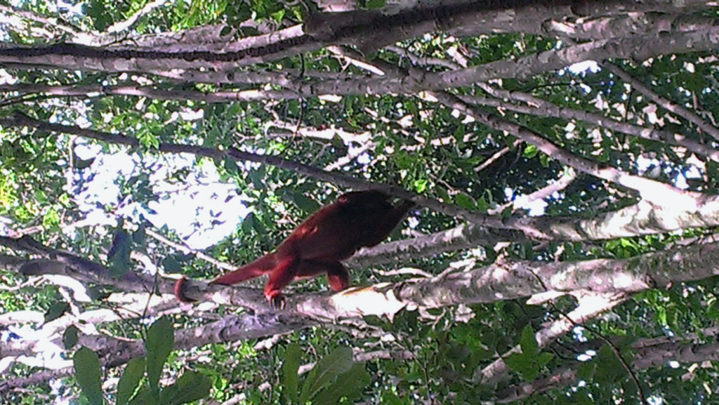 A wonder to see monkeys with reddish fur moving from branch to branch, I tried several times to capture them with the camera, it was difficult for me, in the region they call them araguatos because they howl. However, I made a somewhat decent take, beautiful animal.