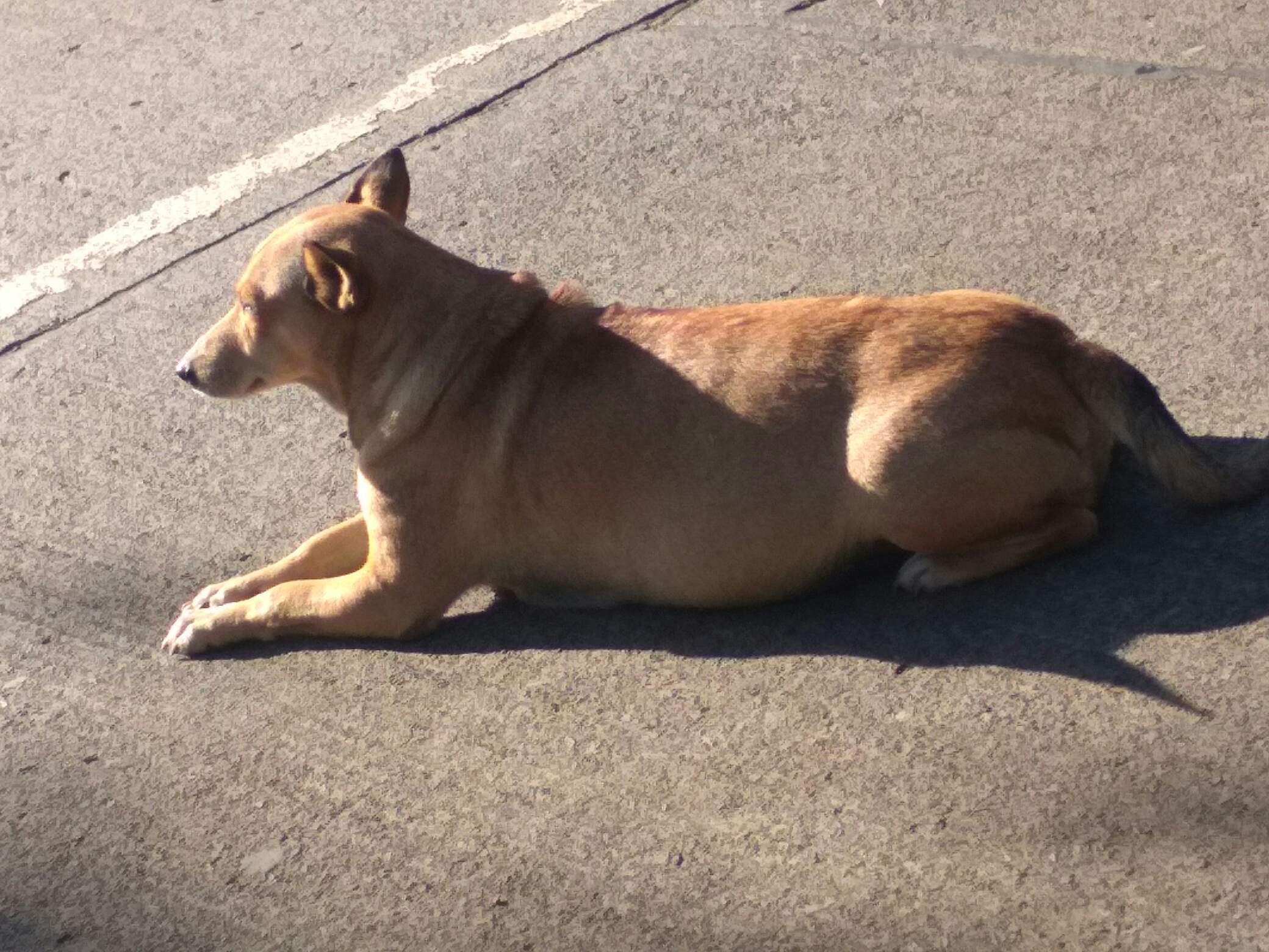 I felt warmth in my heart when I saw this mama dog, as if feeling the heat of the sunrise. She stayed beside the stool when I had brewed coffee at coffee stall beside the school campus. It was a beautiful Wednesday walk.