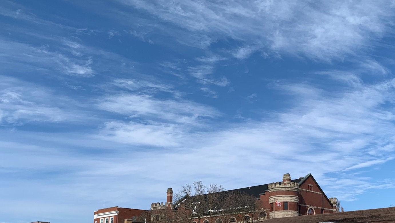 One last view of the great big sky over the armory building where the Army Reserves HQ is. I love the old fortifications which would have been for defense in times gone past but are ornamental and interesting now. It may be the dead of winter now but a nice blue sky, friends, beer and a sociable small town make it rewarding to take a walk. The easiest and most universal of exercise bonds us all and makes for a great blog post.