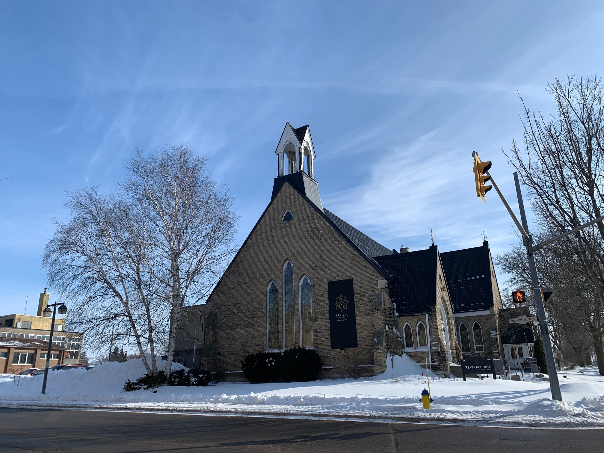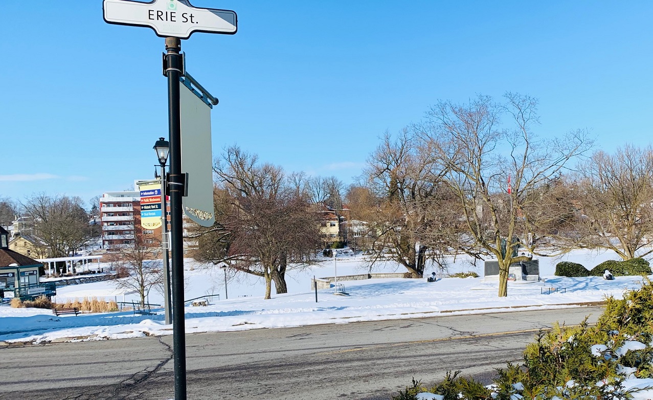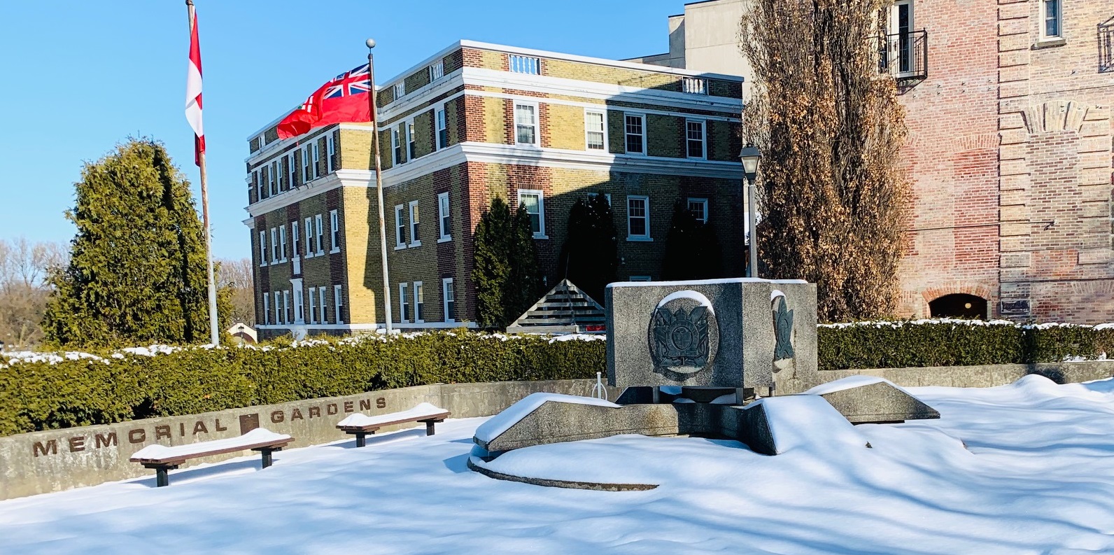 There is not much going on in Memorial Gardens this afternoon as a few fresh inches of snow lay undisturbed on the courtyard and benches. These are some of the oldest buildings in the town which would be new developments when you compare them to the European countries where this architecture must have originated. On the right is the side of one of the most popular restaurants in town and the building on the left is an old folks home I think. Nice to have sky and space right in the center of town.