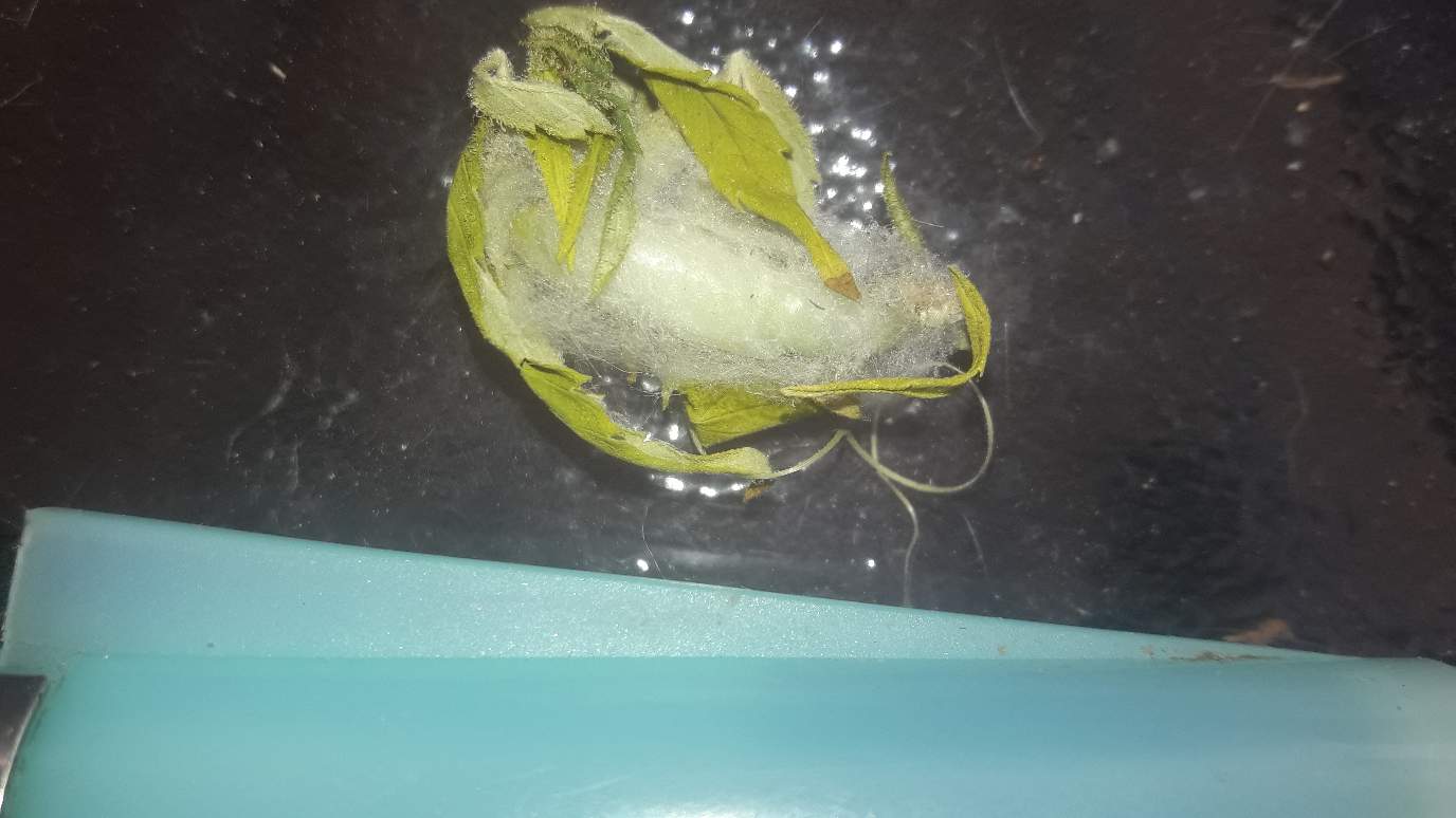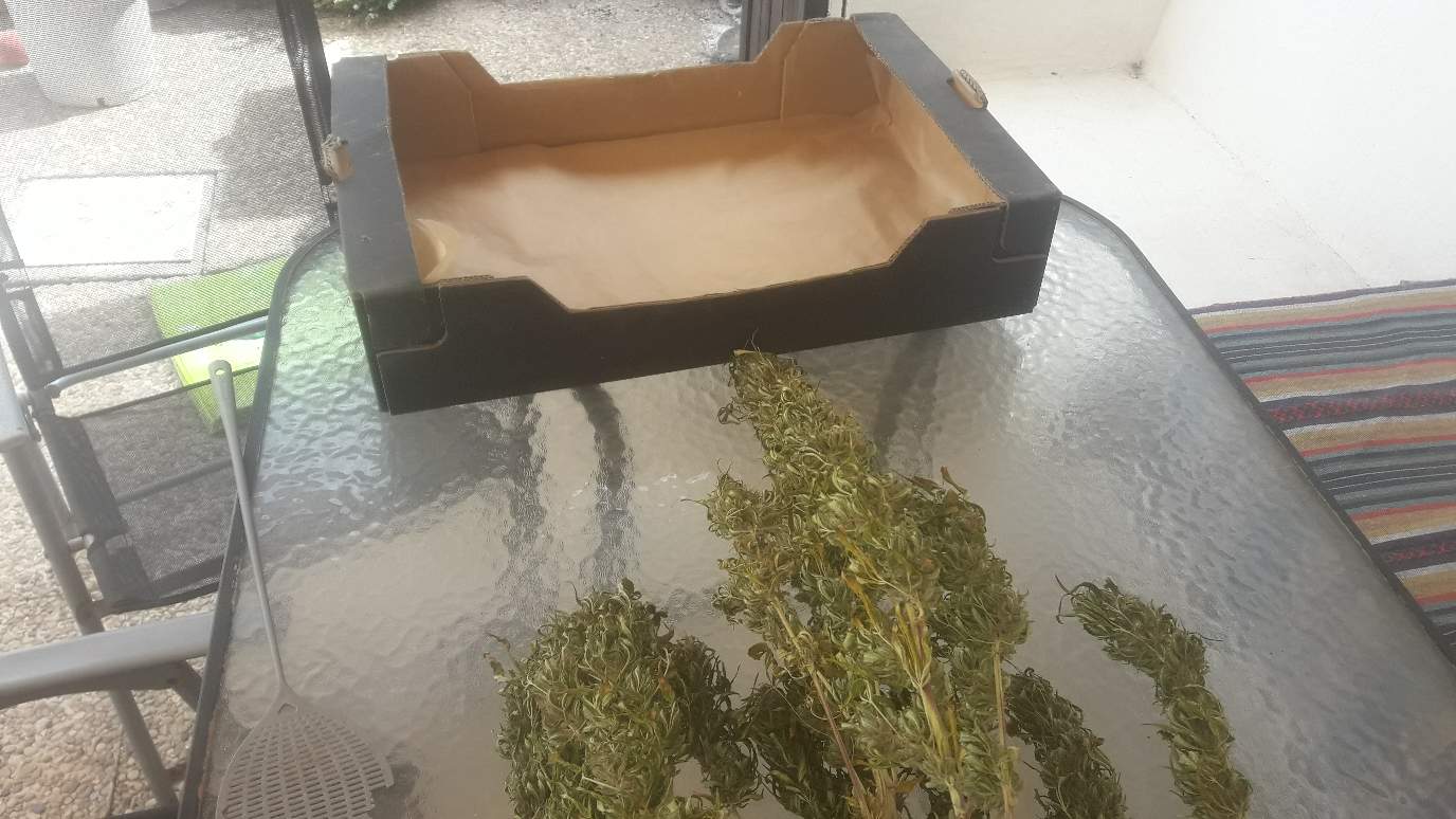 The buds were dry on the inside but next to the stalk they were very sticky. So I decided to do a rough trim.