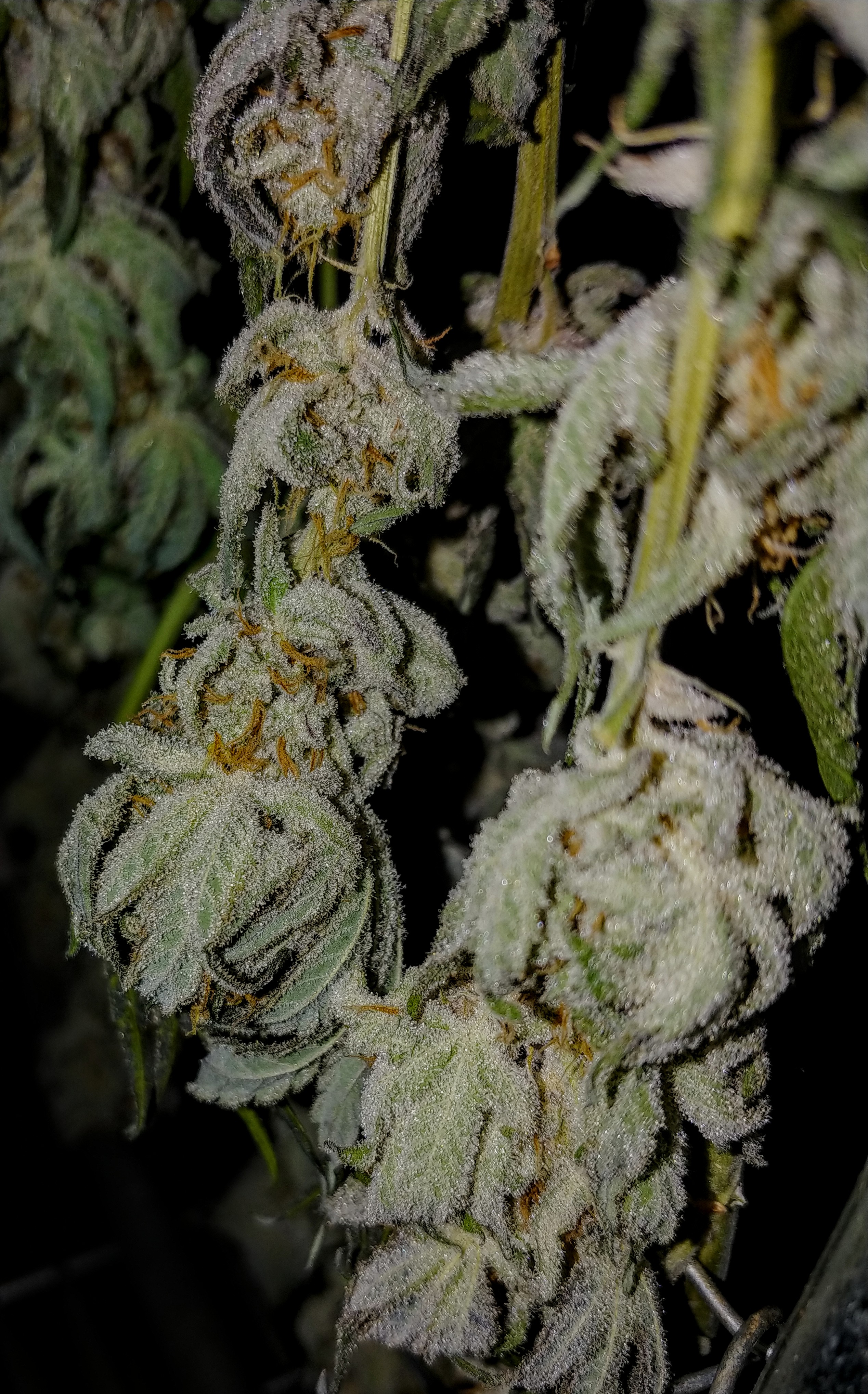 For this post I wanted to highlight the Miracle Alien Cookies or MAC for short. This strain is a hybrid of Alien Cookies X Columbian Gold X Starfighter. She finishes with deep purples and plenty of sticky, stinky resin! I will be sure to take more pictures and she finishes and shows her true colors! I have 3 photos for you today an overview of one MAC light, a close up of the flower at 7 weeks and a close up of the flower taken down and in the cure room.