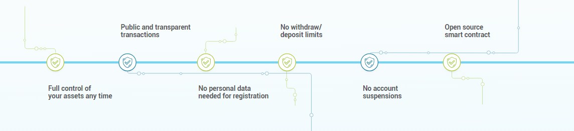 All assets and trading logic stored on the blockchain. No manipulation possible.