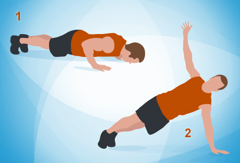 Begin in a standard push-up position. Start a conventional push-up, however as you return up, move your weight onto your left side. Turn your abdominal area and broaden your correct arm straight up toward the roof. Come back to your beginning position, at that point rehash with the correct side. Rehash for 30 seconds.