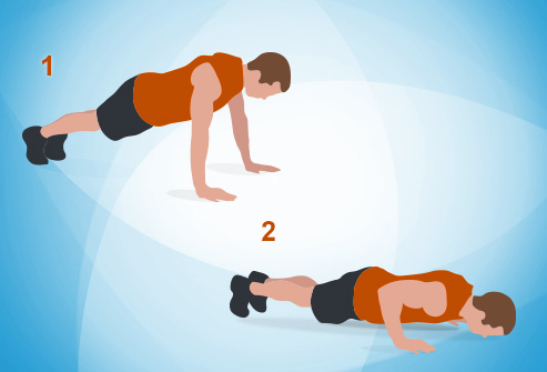 Get into a "Board" position on the floor or tangle, feet together with toes tucked under, hands planted level beneath your shoulders. Gradually twist your elbows and lower your body toward the floor, as far down as you can go holding back and hips level. At that point press back up and rehash for 30 seconds. You can make this simpler by laying your weight on your knees rather than your feet. To support force, have a go at laying your feet on a low seat or venture rather than the floor.