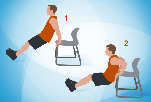 Sit on the front edge of a steady and solid seat or seat, and put your palms on the edge, fingers indicating forward or somewhat you. Dial down the seat, supporting your weight with your foot rear areas and your palms. Gradually twist your elbows as you bring down yourself toward the floor, at that point push back up. Rehash for 30 seconds. You can make this activity all the more difficult by supporting yourself on one leg at any given moment.