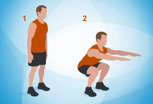 Remain with your feet bear width separated and toes forward. Twist your knees as you pivot at the hips, moving them back and down like you're going to sit in a seat. Lower yourself to the extent you serenely can, keeping a large portion of your weight on your foot rear areas. Remain back up. Rehash for 30 seconds.