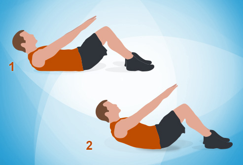 Begin with an essential crunch: lie level on your back, with your knees twisted and feet on the floor. Fix your center. Press your lower once more into the tangle and reach toward best of knees. Come back to beginning position, however, keep center tight and rehash for 30 seconds.